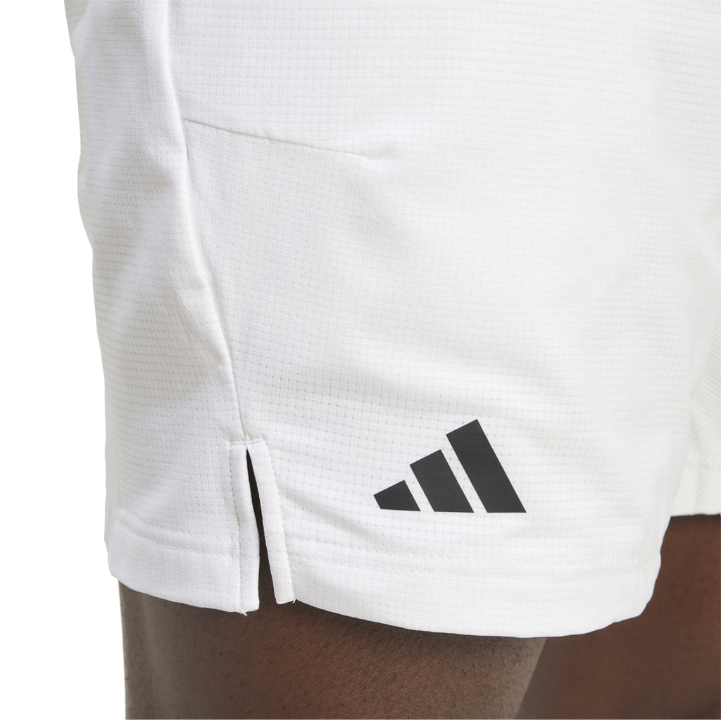 Classic white adidas tennis short. Step onto the tennis court ready to play your best in these shorts. Part of the adidas Gameset collection, they'll support your every move with their stretchy fabric and ergonomic construction. CLIMACOOL wicks and disperses sweat for cool, dry and distraction-free performance.