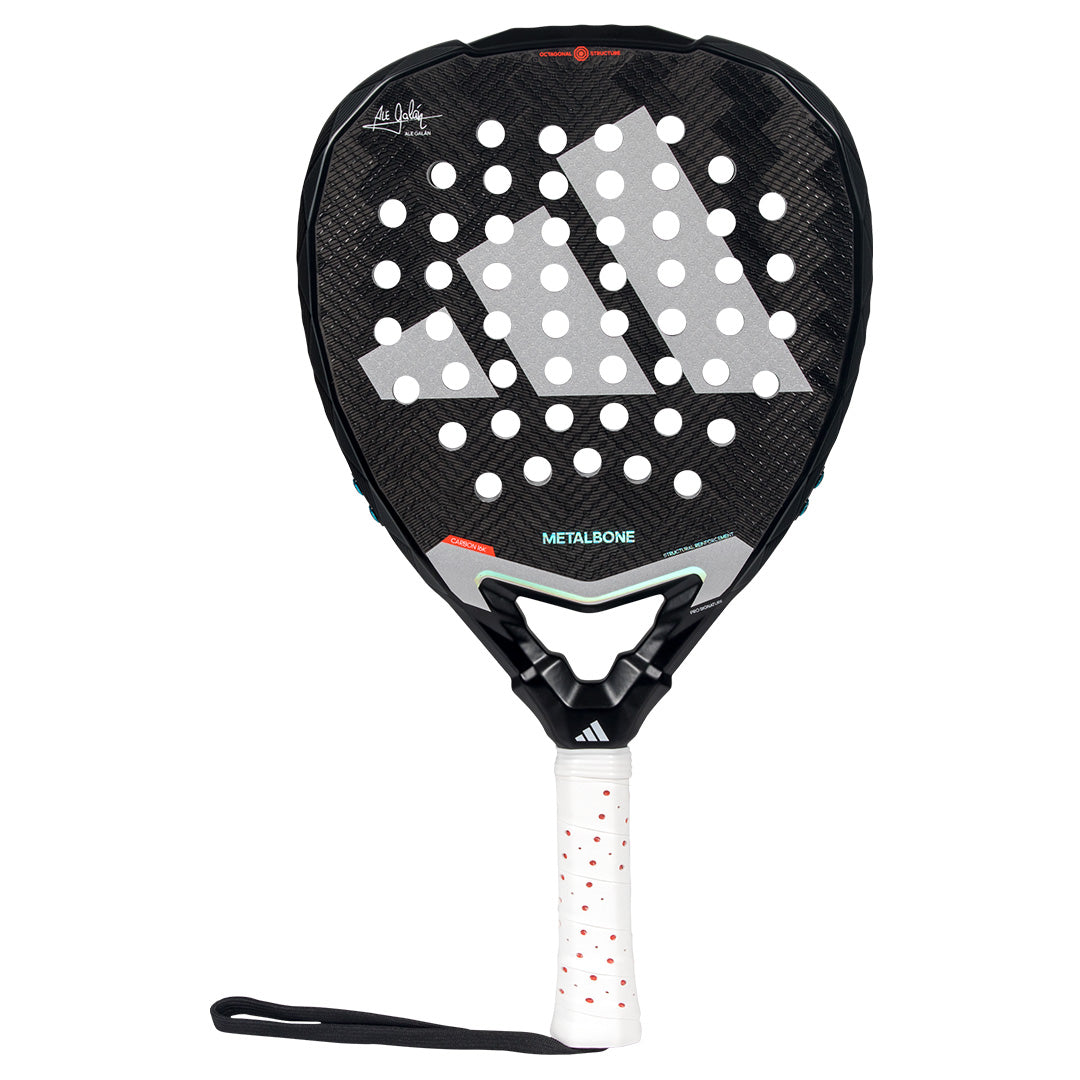 Remarkable technology for maximum freedom of on court expression. The Metalbone 3.4 is one of Ale Galán's latest padel racquets, designed to elevate padel technology to new heights. Featuring the innovative weight and balance system, it allows for precise customisation to suit your playing style. The extended Power Extra Grip handle, combined with the low-polyhedron design of the frame and core, delivers exceptional power. With its diamond shape, premium materials, and Power Groove rail in the racquet frame, this racquet offers an unrivalled level of performance.