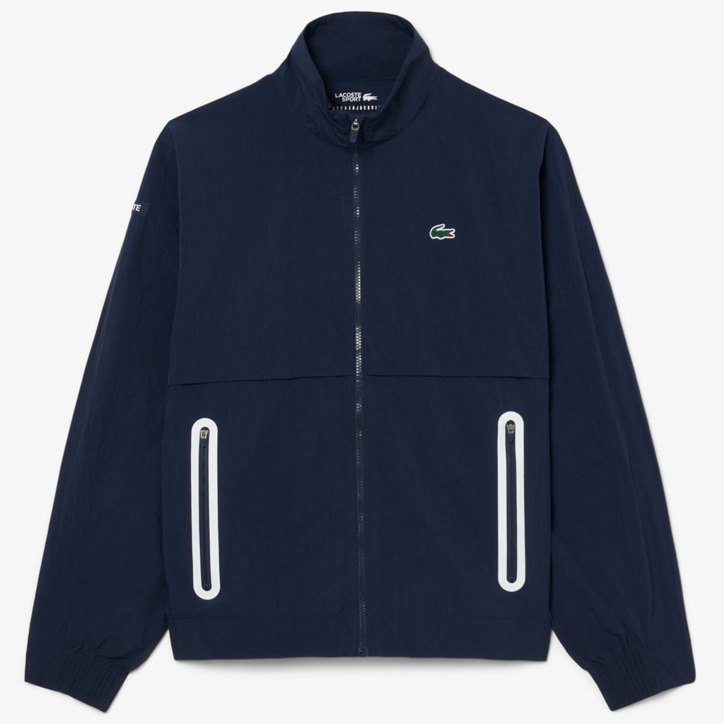 Epic tracksuit to roll up to court in style. This tracksuit, tried and tested by champion player Novak Djokovic, is a testament to 90 years of Lacoste tennis expertise. Made from textured taffeta fabric with laser cutout details, offering maximum comfort and freedom of movement on the court. A technical design that blends elegance and performance, with sleek lines and subtle branding details.