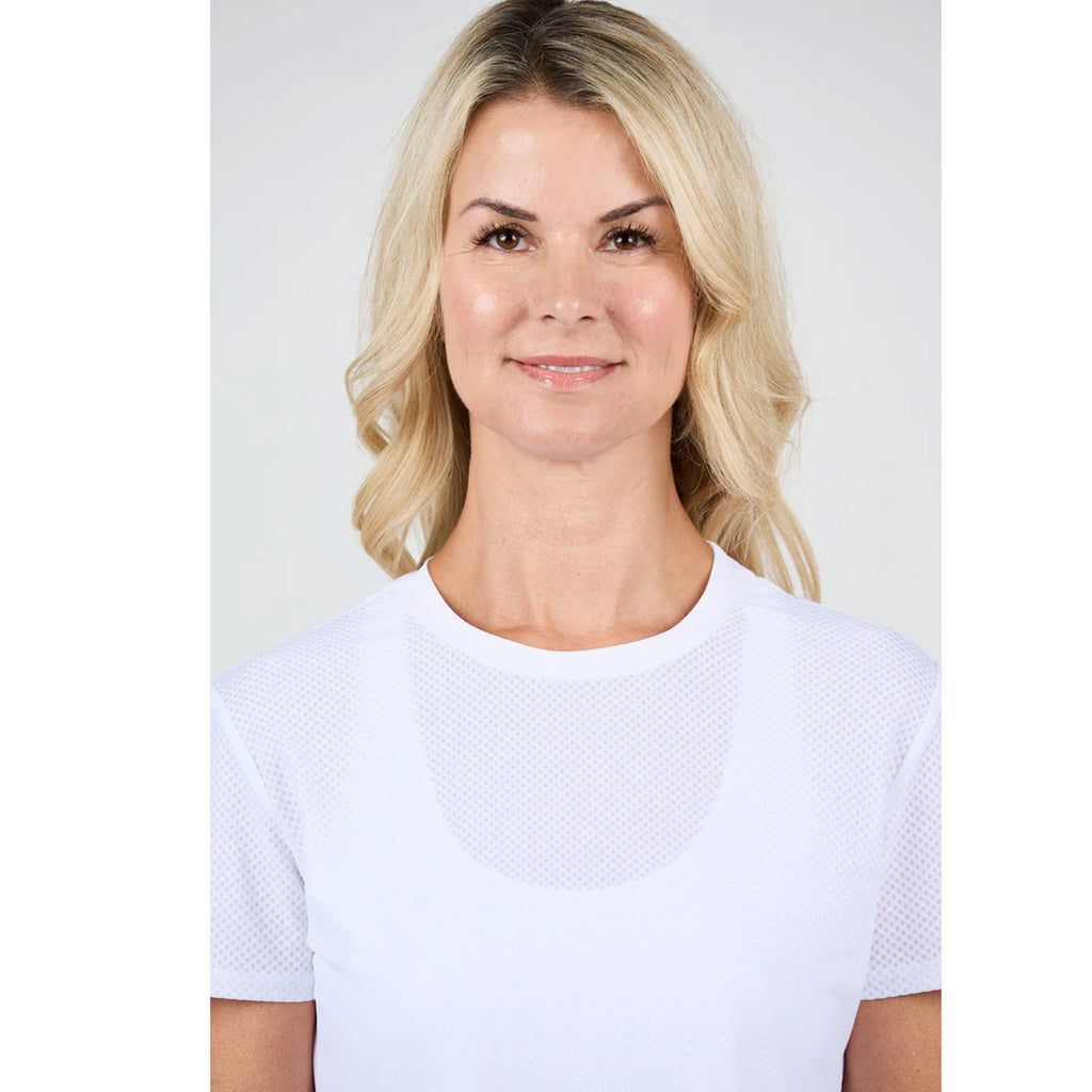 Sofibella Women's UV Staples Mesh Short Sleeve Tee - White