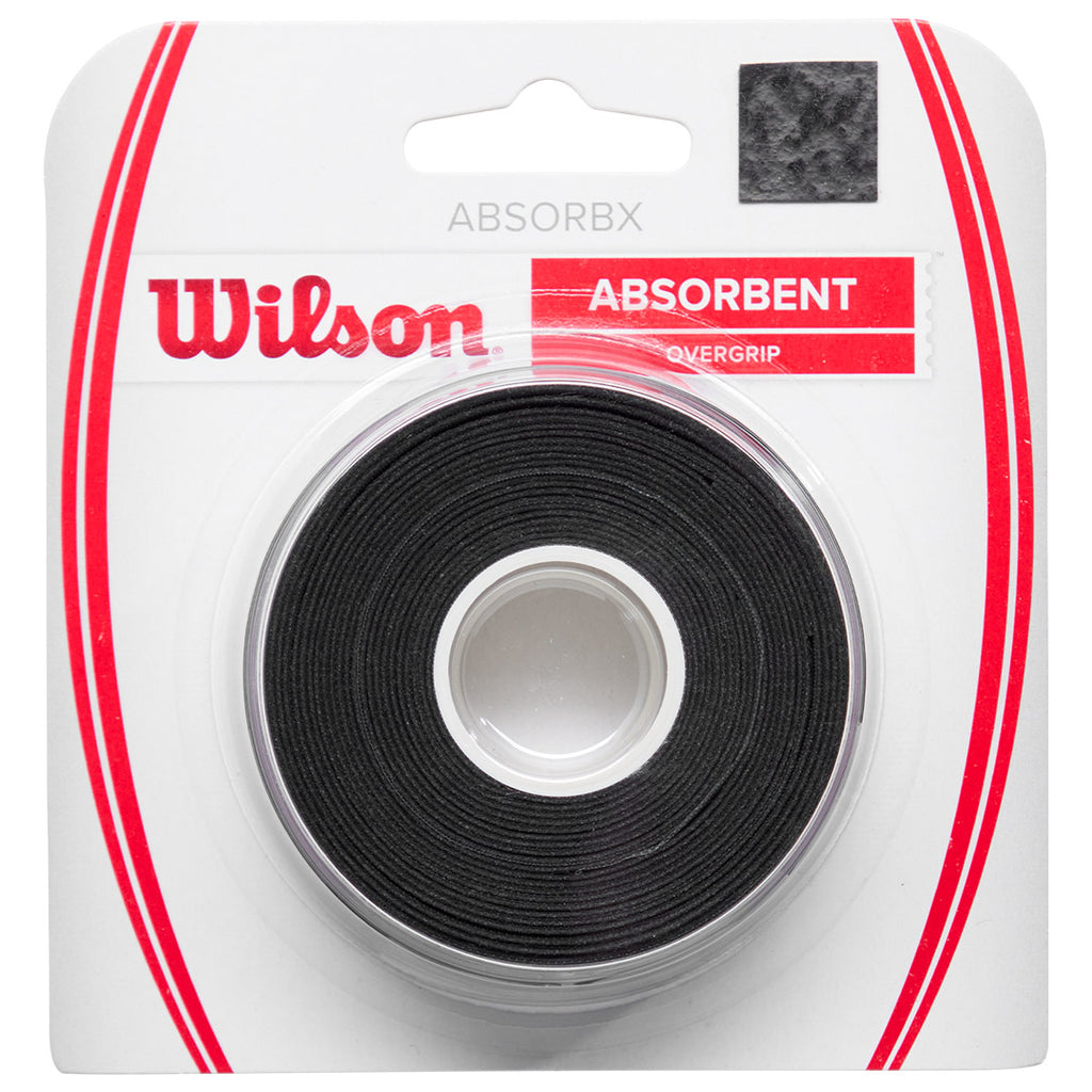 Add extensive grip to your racquet. Sized specifically for tennis racquets, the AbsorbX Overgrip from Wilson provides excellent tack for players who love the feel of a dry grip. Ultra-absorbent and durable, it's made for lasting play in extremely sweaty conditions. Perfect for replacing worn grips or applying to new racquets. Pack contains three overgrips.