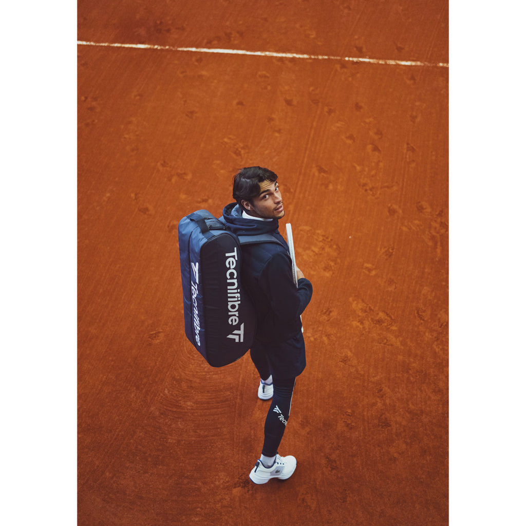 From an aesthetic point of view, the performance of the Tarpaulin material is highlighted by the elegance of navy blue, a tennis and Tecnifibre colour perfectly matched to the textiles range.
