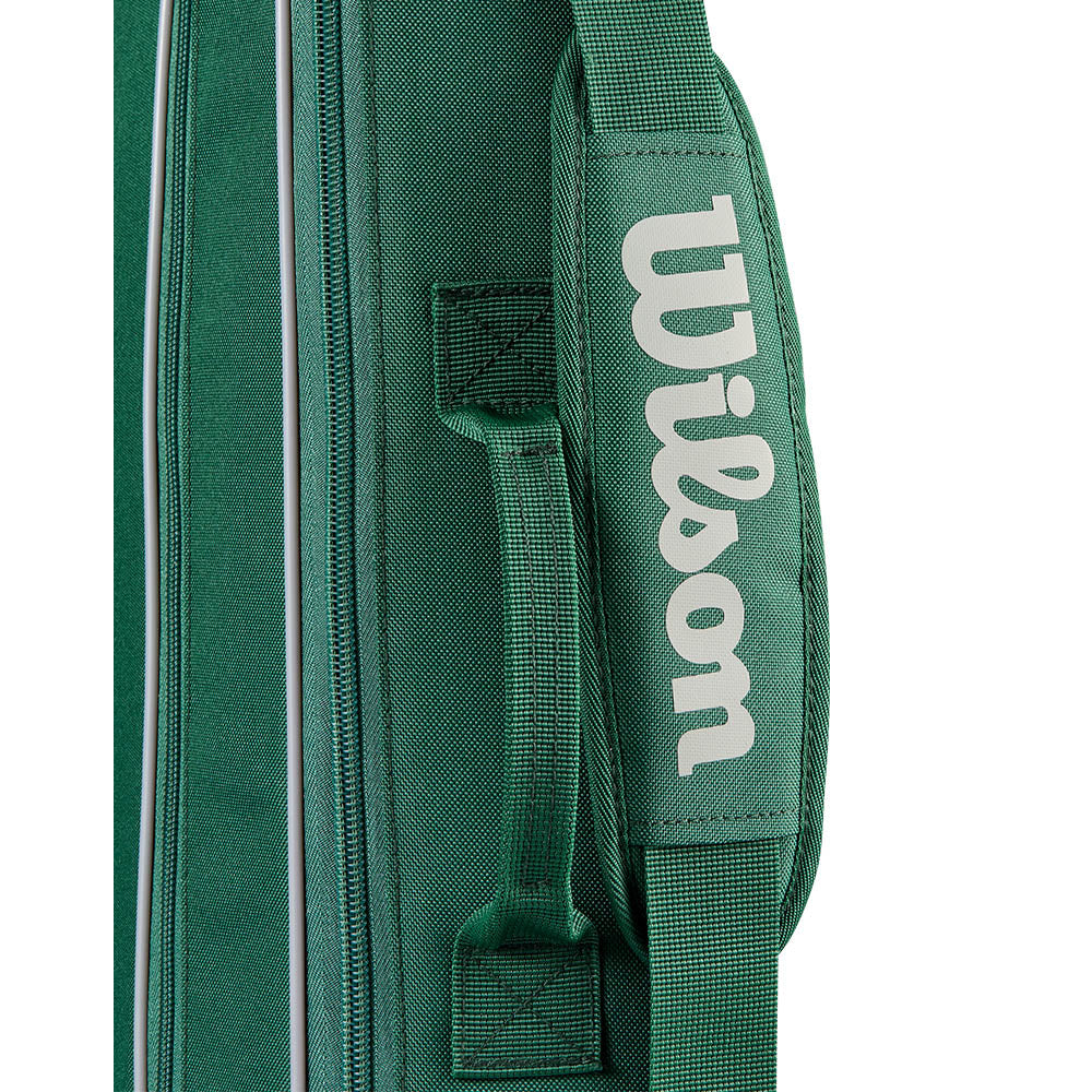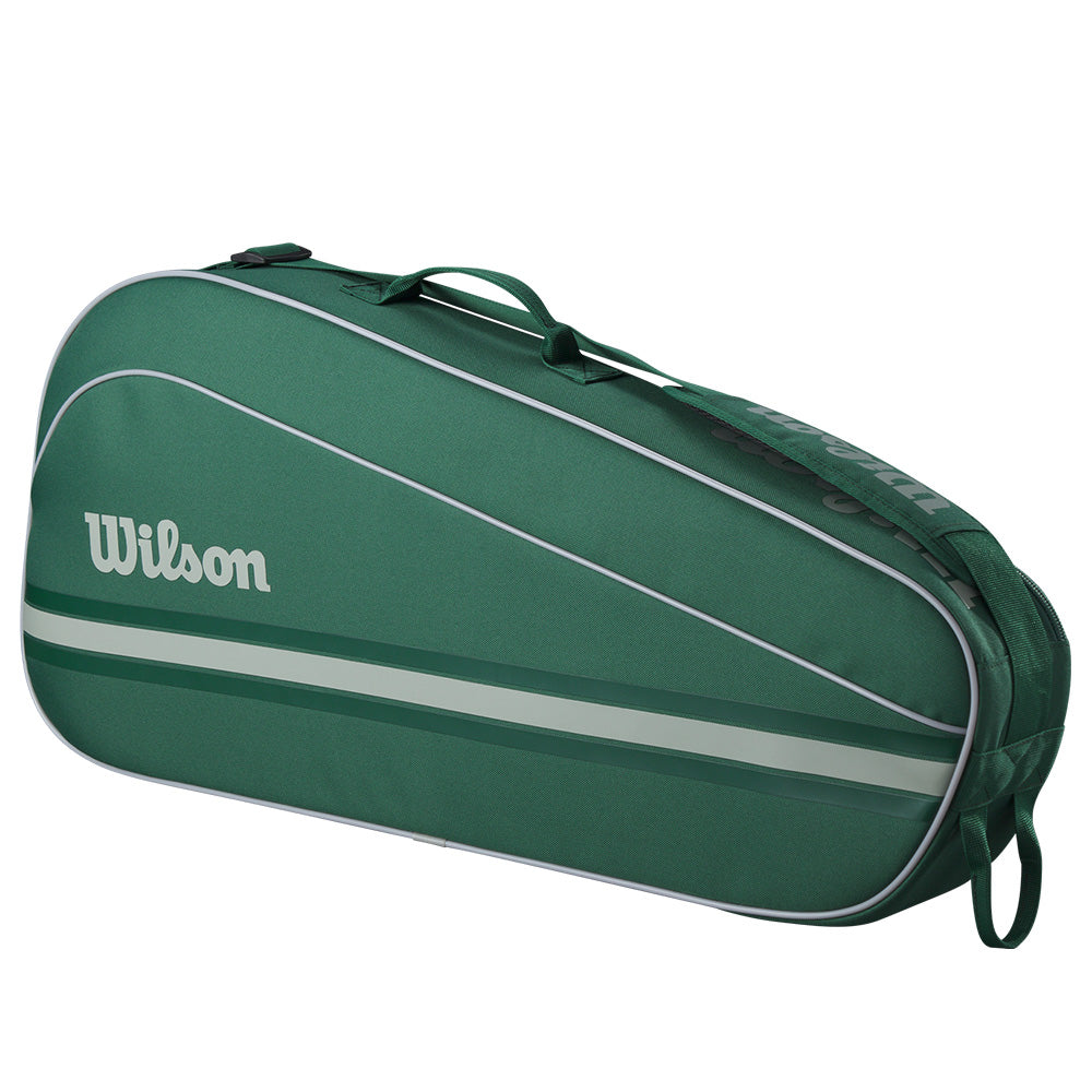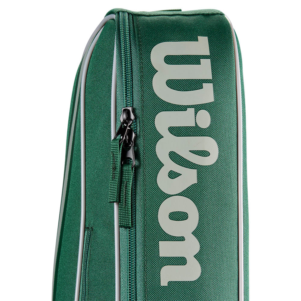 Great entry level tennis bag for players with a couple racquets in cool green. A great bag for club players and those who are new to the sport, the latest Team 3 Pack from Wilson provides room for up to three tennis racquets, apparel and other essential gear. Besides the main compartment, there's a large outer zip pocket perfect for stashing extra balls, grips and personal items. Carry it either by hand with the top grab handle or use the padded shoulder strap.