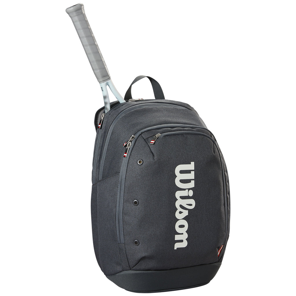 Everyday, sophisticated bag for tennis or life. Packing for the day or a weekend away, Wilson's latest Tour Backpack lets you travel light but with the functionality of a seasoned pro. Featuring a design inspired by Wilson's 100+ year legacy, it's been updated with a modern, dynamic silhouette, plus improved shoulder straps for better comfort. This sleek, compact pack can hold one or two racquets, with locking zips to keep them secure. There's a dedicated laptop sleeve and an external zip pocket for smaller personal items and valuables.