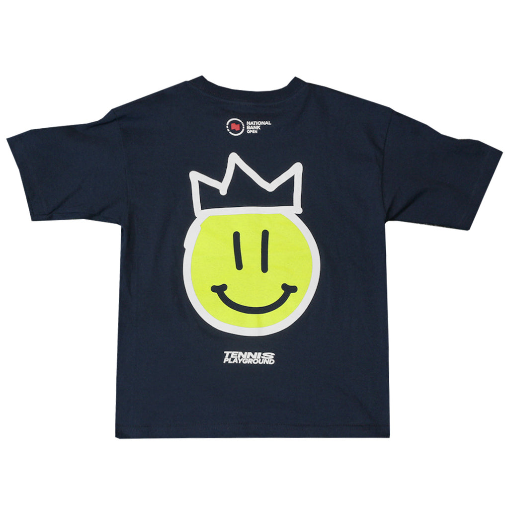 Navy blue with a fun design that kids will love. This garment features a cover-seamed neckline and taped shoulders for lasting comfort and structure. The collar, cuffs, and hem are double-needle topstitched for enhanced durability, while a tear-away label allows for tag-free wear or easy customization. Proudly USMCA Certified.
