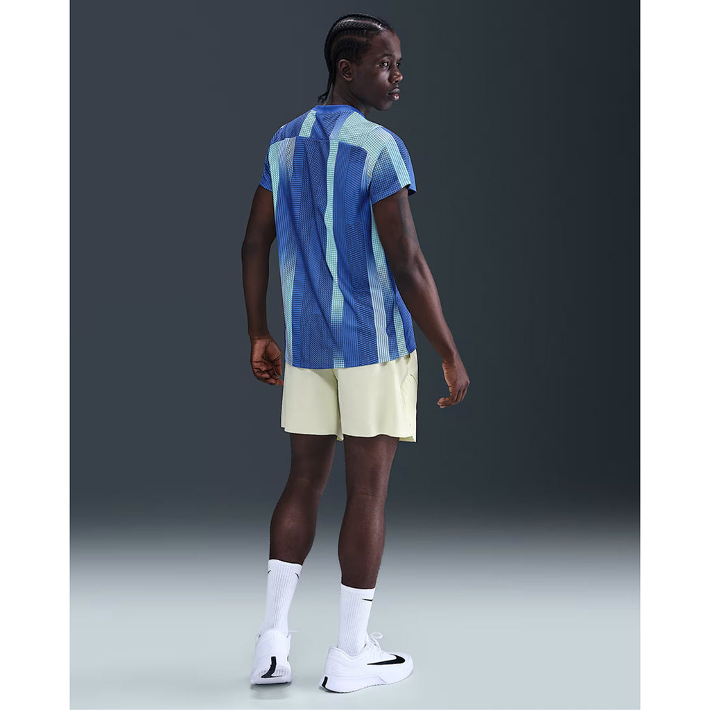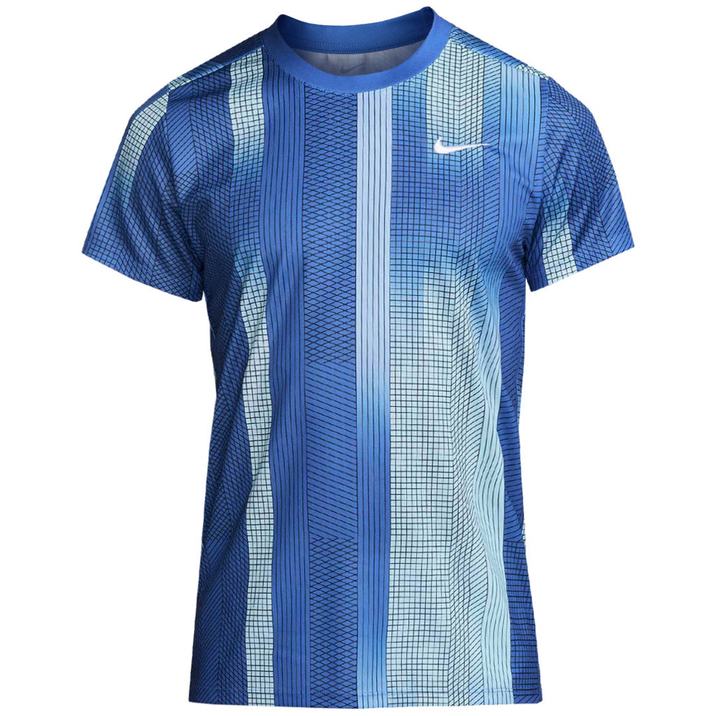 Fun mix of blues on a cool patterned shirt. Breathable, stretchy and sweat-wicking, the Victory top is always ready to hit the court. The back shoulder seam placement is designed to stay out of the way while you rotate and drive through the ball.