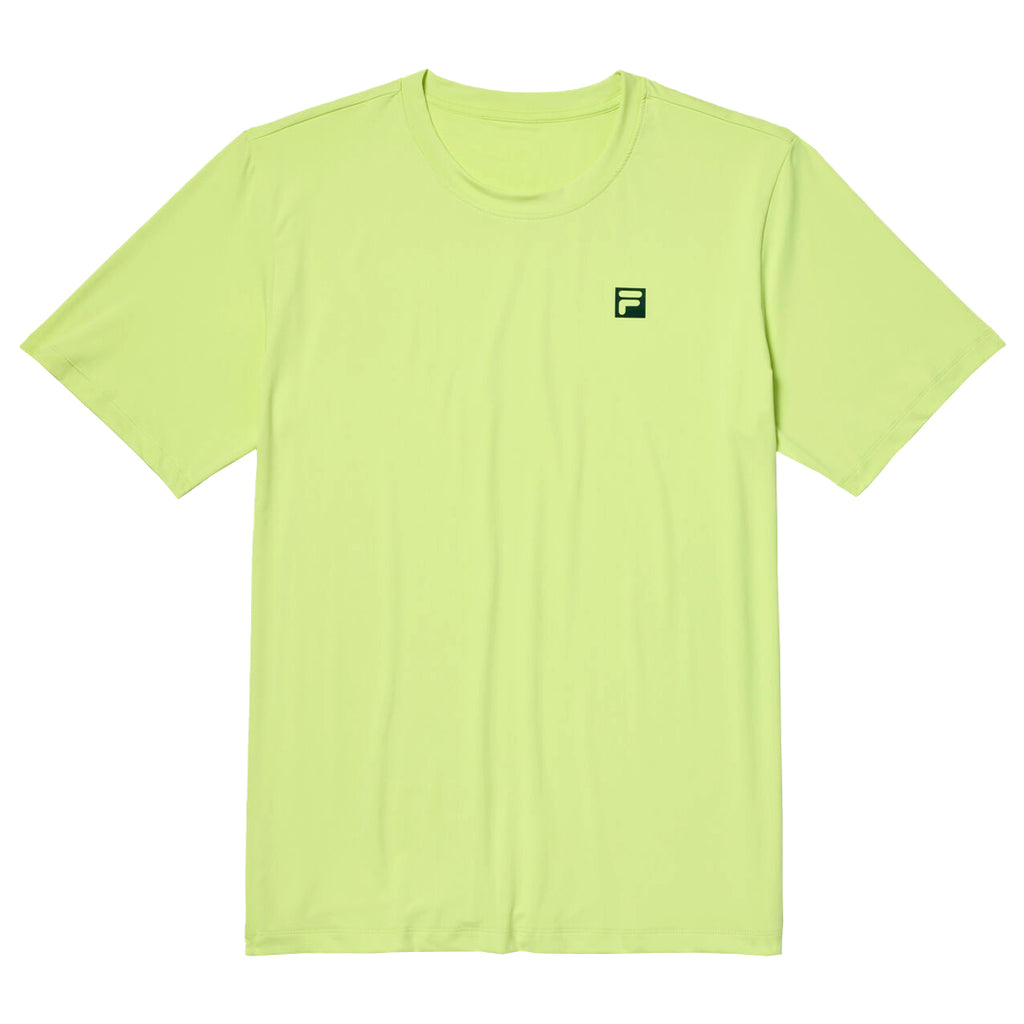 Fun greenish yellow colour on a comfy, athletic tee. The Fila Men`s Volley Core Tennis Top is a crew neck shirt made with lightweight fabrics that are cool to the touch to keep you going on the tennis court. Serve up and rally in comfort and style.