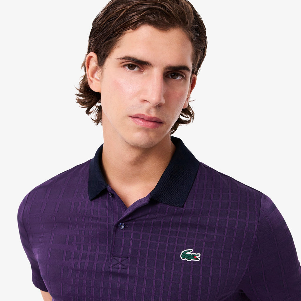 Stylish purple polo in athletic style. This polo shirt, tried and tested by star player Daniil Medvedev, is the fruit of 90 years of Lacoste tennis expertise. Made from stretch jersey for total freedom of movement, with Ultra-Dry technology to keep you feeling fresh. A technical piece finished with a tennis racket-inspired print, for bold courtside style.