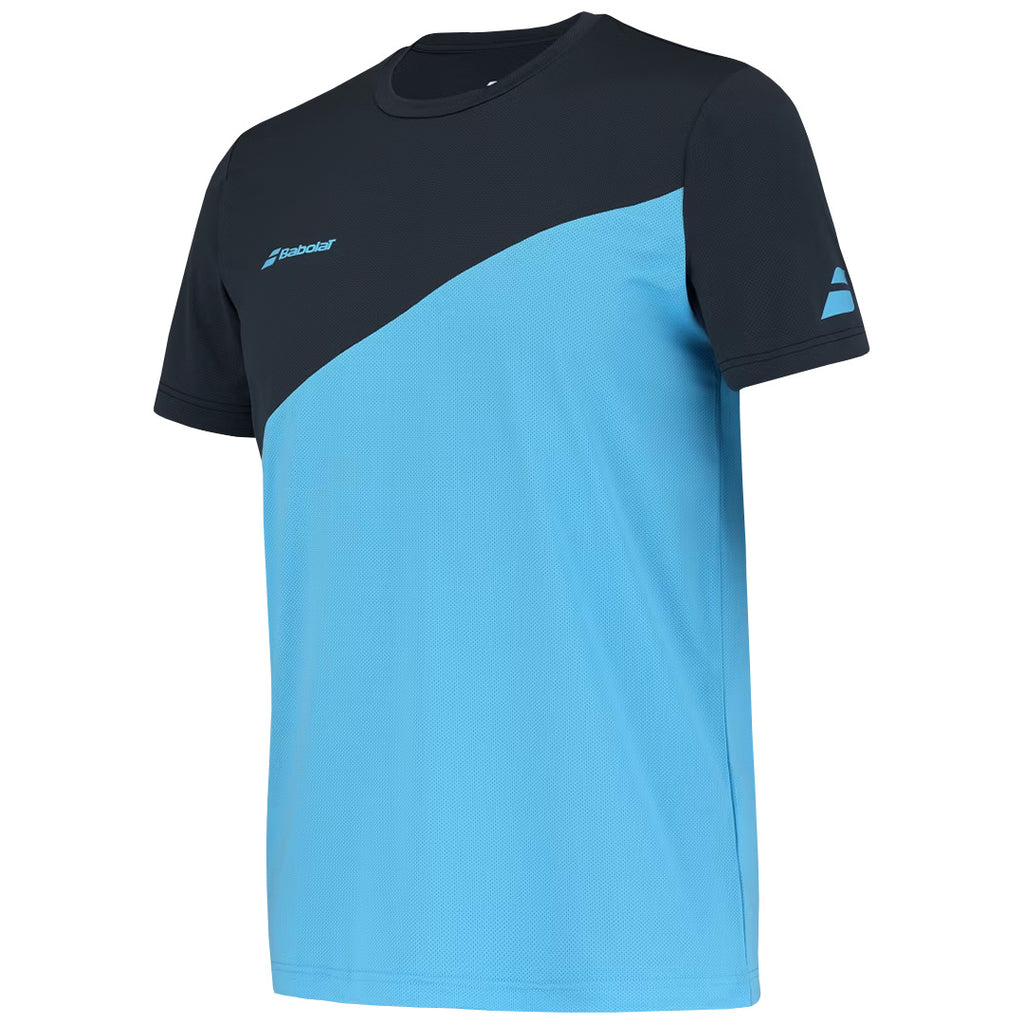Blue tennis shirt that is spectacular for tennis. Introducing the DRIVE men's crew neck T-shirt, the perfect companion to Babolat’s iconic Pure Drive racquet.