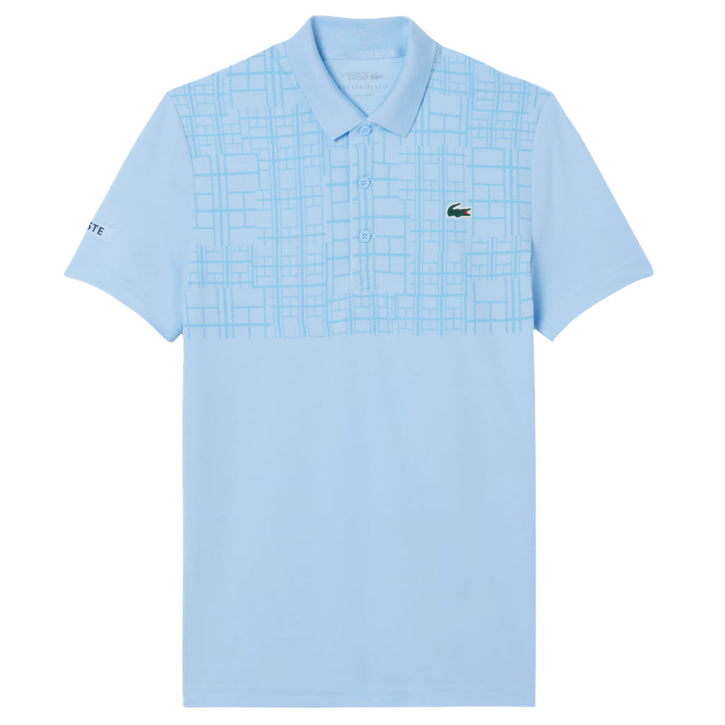 Fun blue design with the Djokovic brand. This polo shirt, tried and tested by sporting superstar Novak Djokovic, is a lesson in Lacoste tennis expertise. Made from our iconic piqué knit fabric, with Ultra-Dry technology to keep you feeling fresh. The large central print, inspired by tennis racket forms, adds a bold, graphic touch.