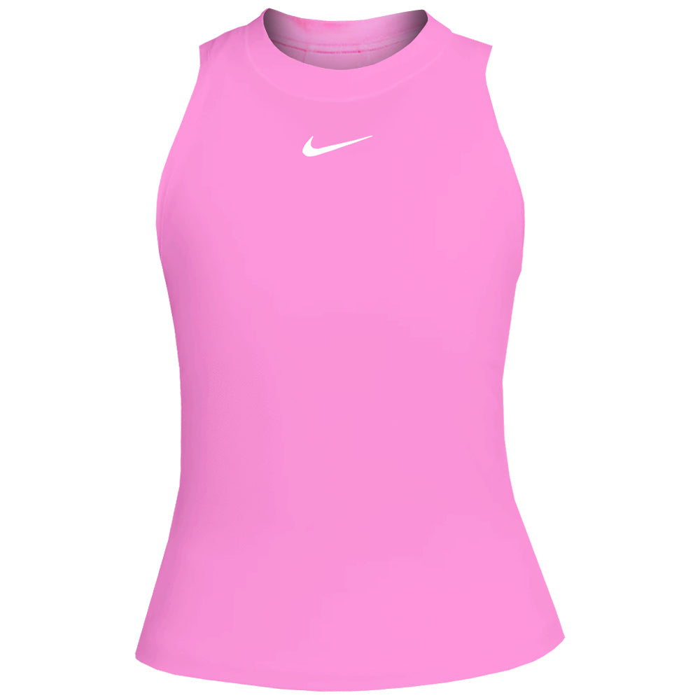 Fun, lightweight and ready for the court in Playful Pink. Behind the baseline and ready to serve, you've got an advantage in this fitted tank top. Sweat-wicking tech helps keep you dry while strategically placed cut-outs at the back offer extra airflow. A high neckline and stretchy, lightweight fabric provide a snug hold, keeping you covered and free to make all the dynamic movements you need to.