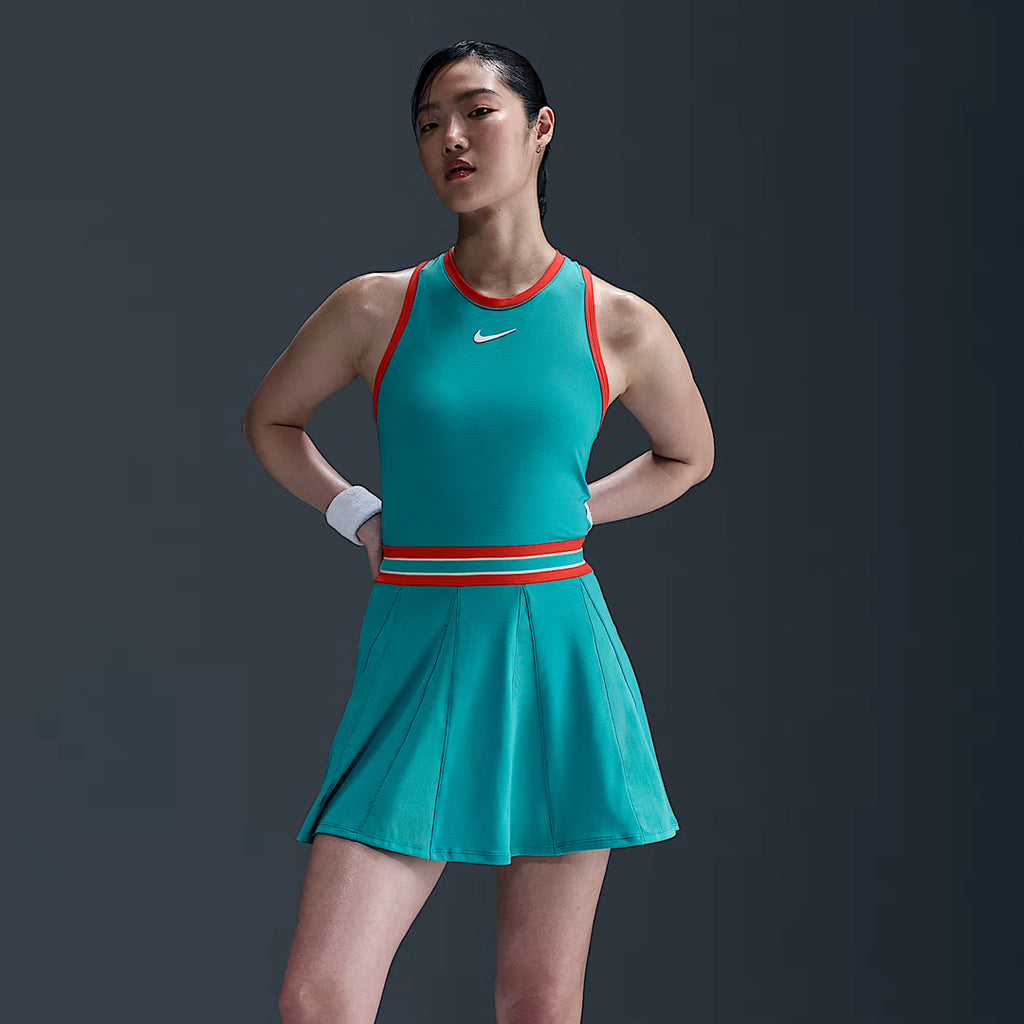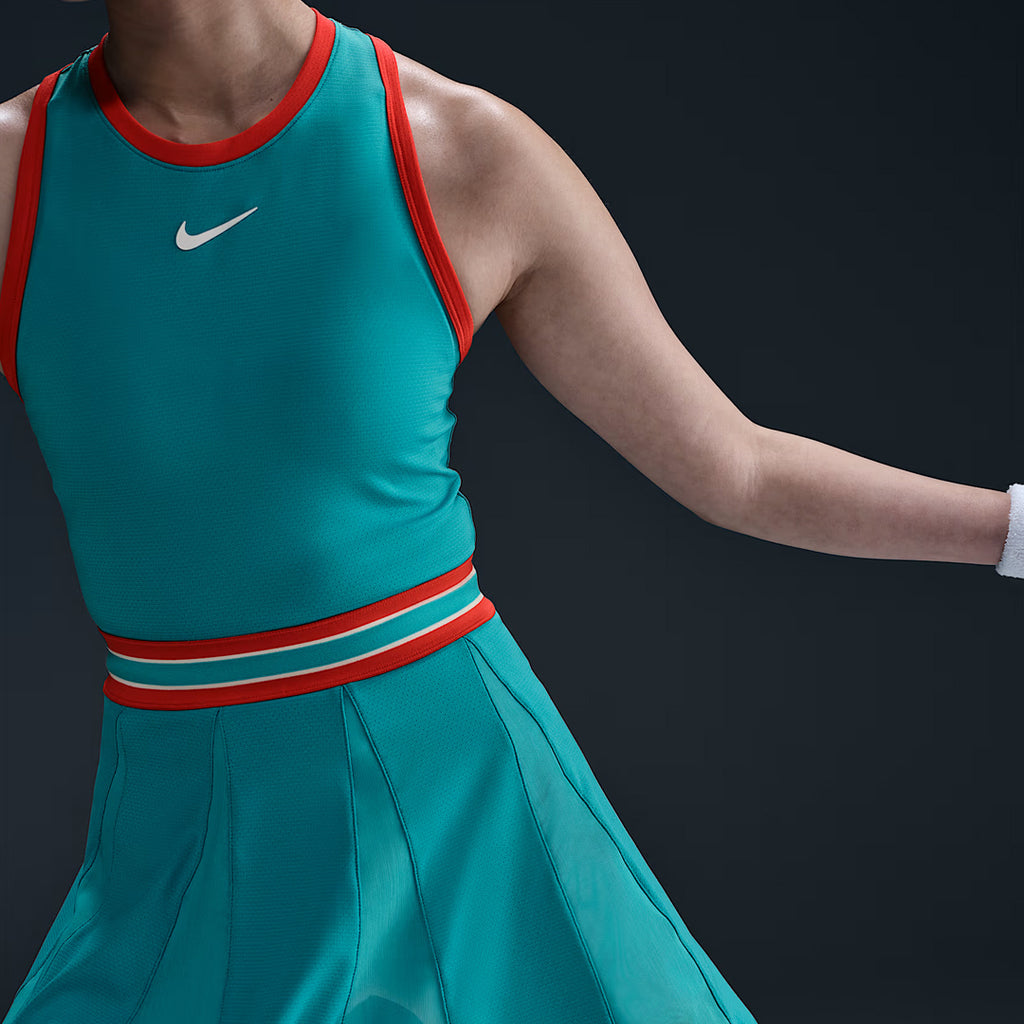 Fun and ready to move on court in stand out Dusty Cactus. Stay cool under pressure in this form-fitting, stretchy Slam dress. Sweat-wicking technology and strategically placed mesh keep you dry and comfortable. Nike Dri-FIT technology wicks sweat away for quicker evaporation, helping you stay dry and comfortable.
