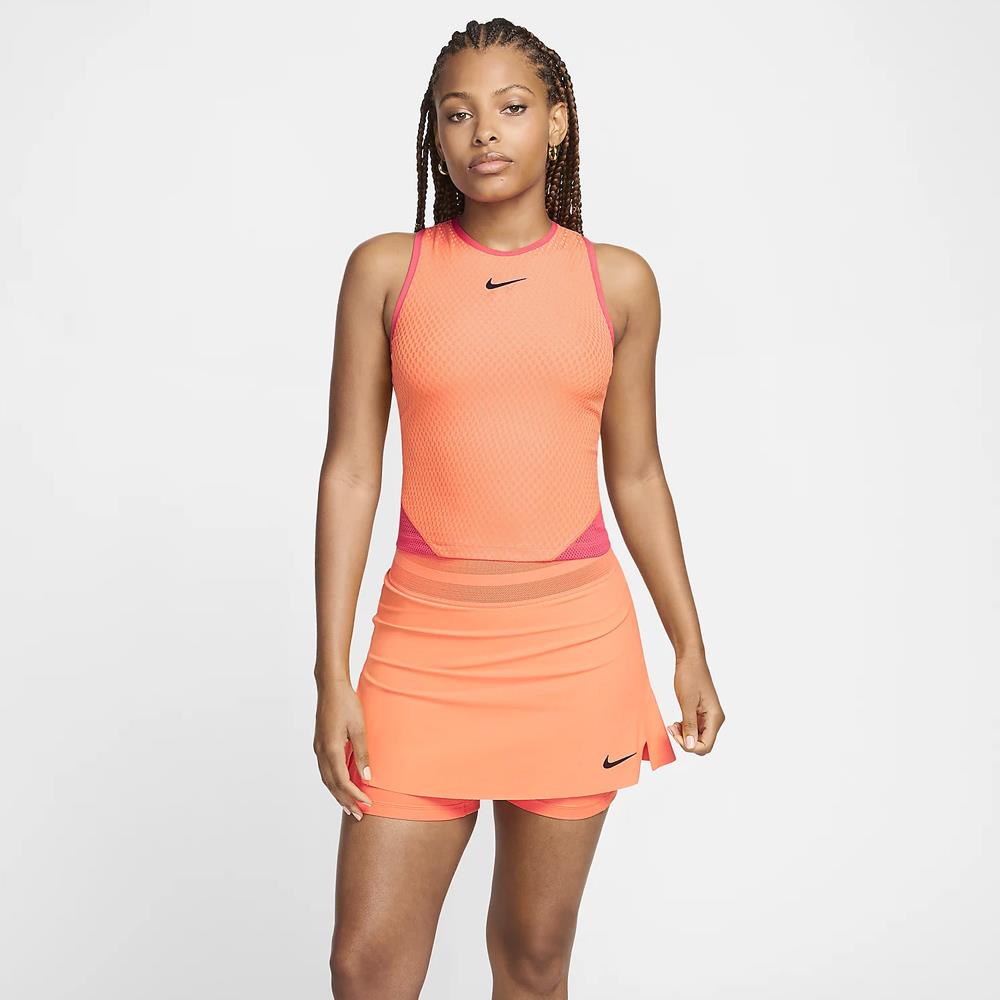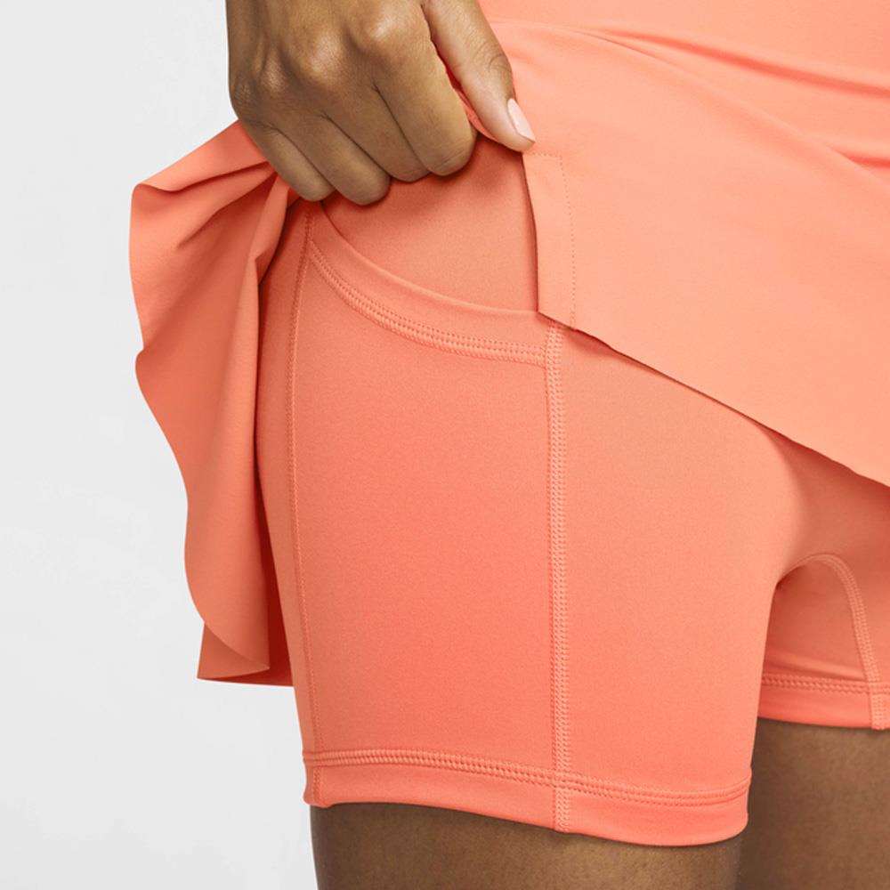 Show off your style in Light Wild Mango. Elevate your game in this stretchy, easy-fitting tennis skirt. Lightweight, sweat-wicking fabric helps keep you covered but cool—even as your game heats up. Plus, drop-in pockets on the internal shorts let you keep your essentials close.