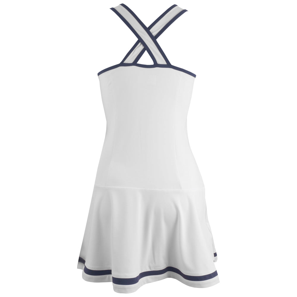 Cross back in bright white, this is a great dress for tennis. Stay cool and comfortable on the court with Penguin’s Women's Color Block Tennis Dress. Made with moisture-wicking fabric and enhanced with stretch, this dress combines practicality and comfort. With a playful color block design and sustainable materials, this dress is sure to make a statement. Machine washable for easy care.