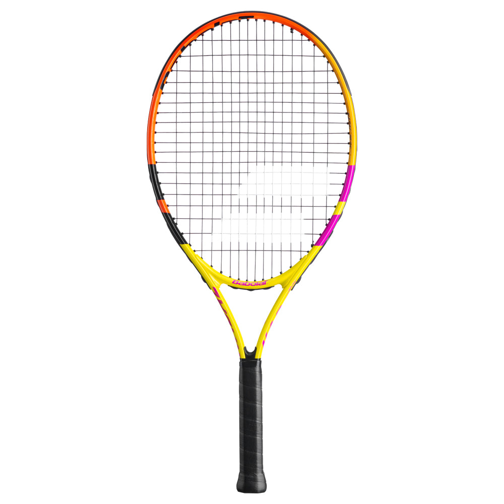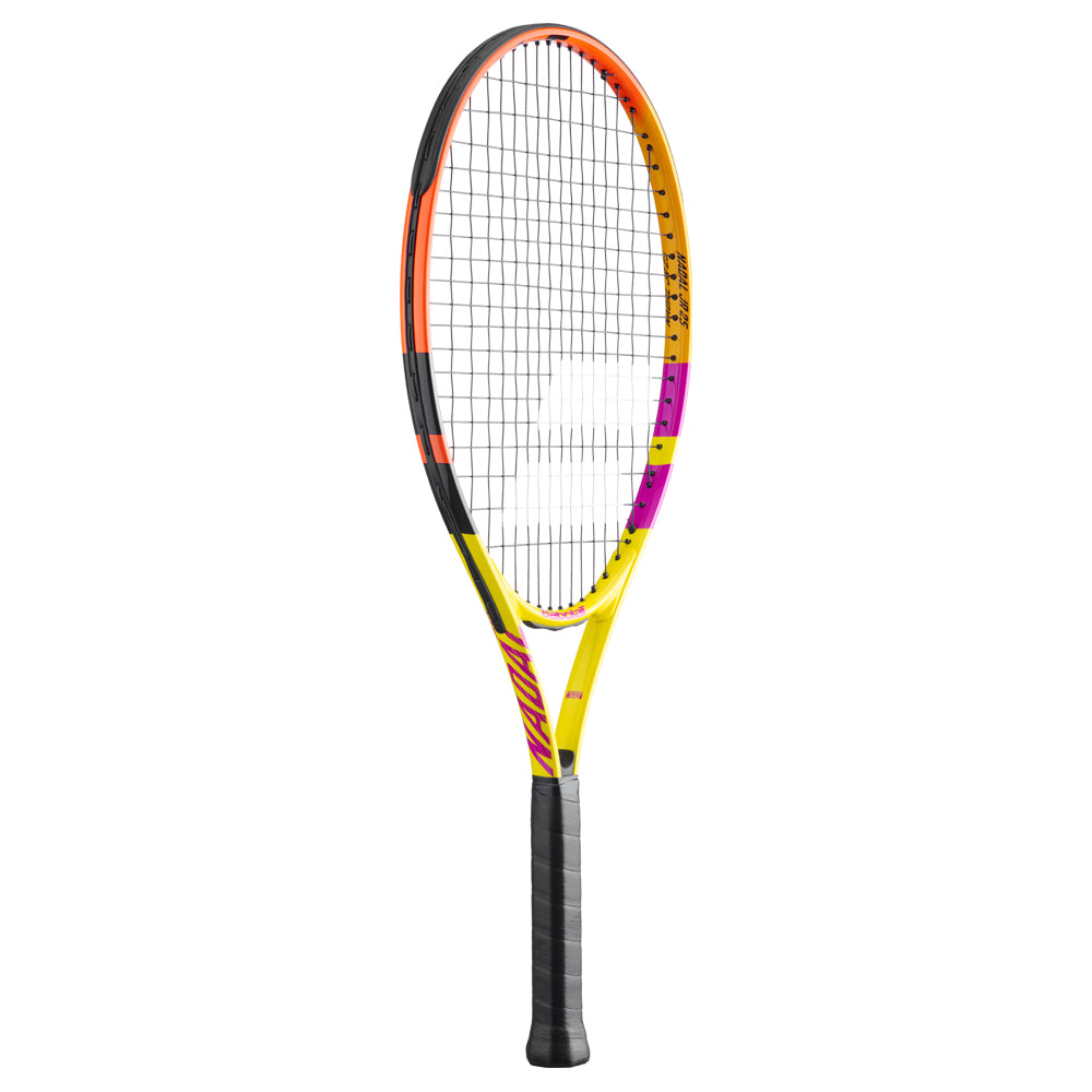 The Babolat Nadal Junior 25" is a lightweight, maneuverable racquet designed for young players learning the game. Its aluminum construction and enlarged head provide easy power and a forgiving sweet spot, helping kids make cleaner contact as they develop their skills. Inspired by Rafael Nadal’s signature colors and graphics, it offers both performance and motivation for junior players. The 25" length is ideal for children roughly 135–145 cm tall, giving them proper reach and control. With a comfortable 4" grip and a user-friendly 16×17 string pattern, it’s a durable, accessible option for beginners and early intermediates.