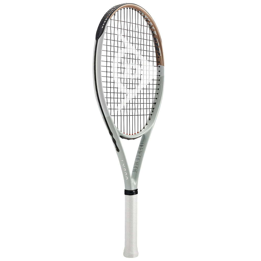 The racquet includes a Dunlop vibration dampener for shock absorption.