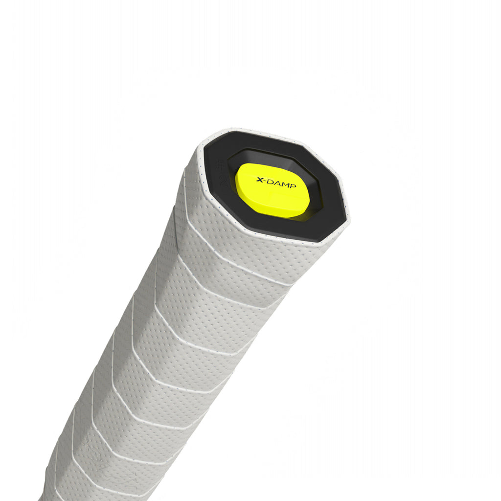 • X-DAMP: -36% vibrations: How does it work? A steel piece is placed in an elastomer pocket in the handle to move in opposition to the force of each ball impact. The result: 36% less harmful vibrations for the arm and less fatigue.