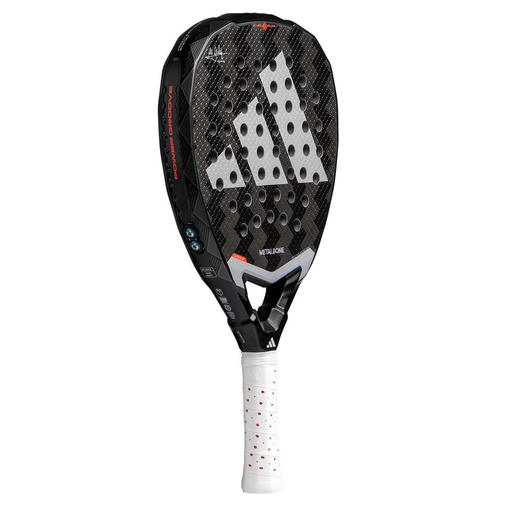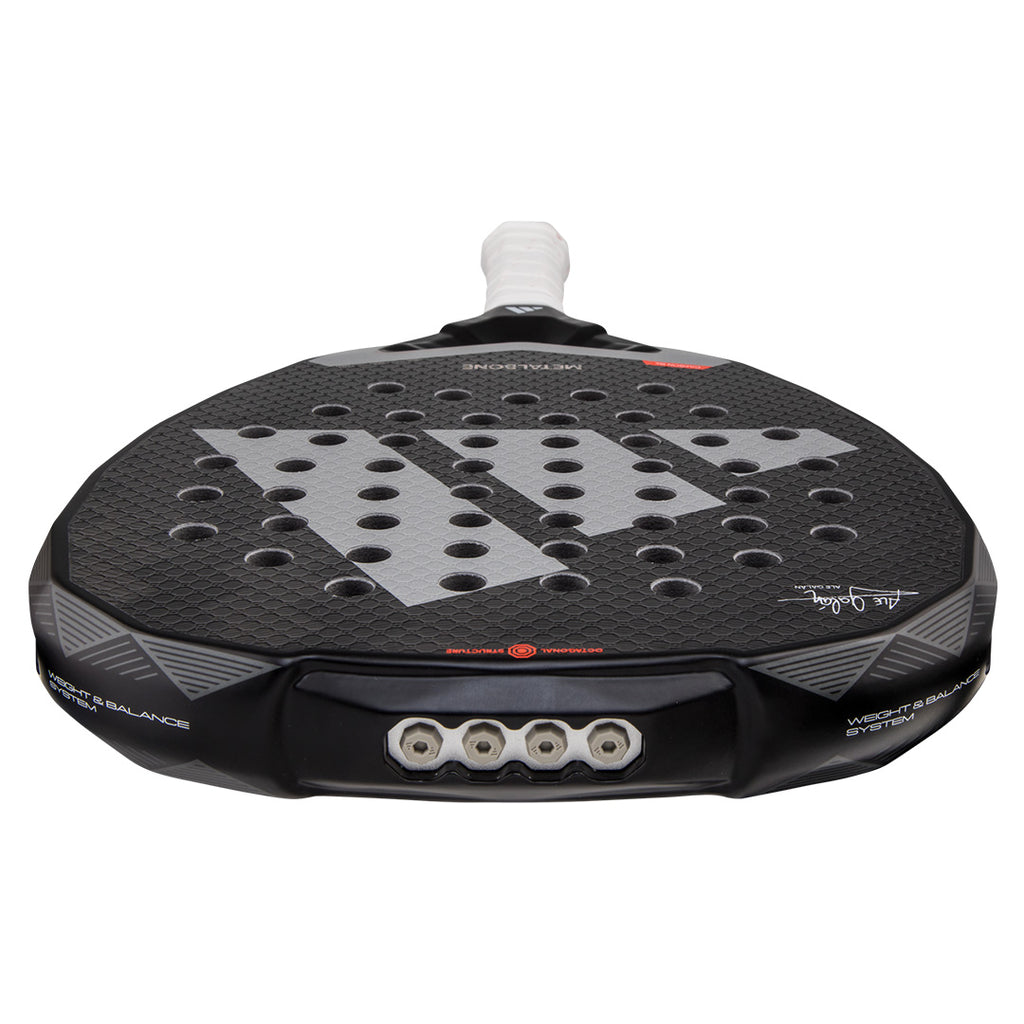 Remarkable technology for maximum freedom of on court expression. The Metalbone 3.4 is one of Ale Galán's latest padel racquets, designed to elevate padel technology to new heights. Featuring the innovative weight and balance system, it allows for precise customisation to suit your playing style. The extended Power Extra Grip handle, combined with the low-polyhedron design of the frame and core, delivers exceptional power. With its diamond shape, premium materials, and Power Groove rail in the racquet frame, this racquet offers an unrivalled level of performance.