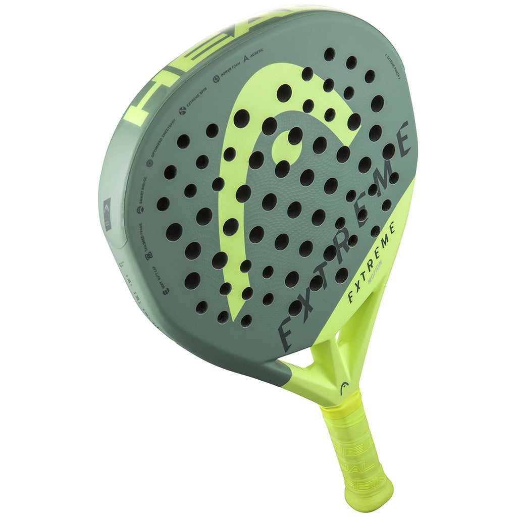 Made from a new, diamond-shaped mold, the EXTREME MOTION PADEL RACQUET is ideal for advanced and professional players who are looking for both extreme power and maneuverability. While the new Soft Butt Cap technology provides a softer playing feel and dampens vibrations, the innovative Auxetic technology delivers extra power and sensational impact feel. Lighter than the EXTREME PRO, the EXTREME MOTION has a hybrid woven hitting surface for enhanced power and touch, as well as Extreme Spin technology. The exclusive, colorful design adds to the racquet's premium, contemporary appeal.