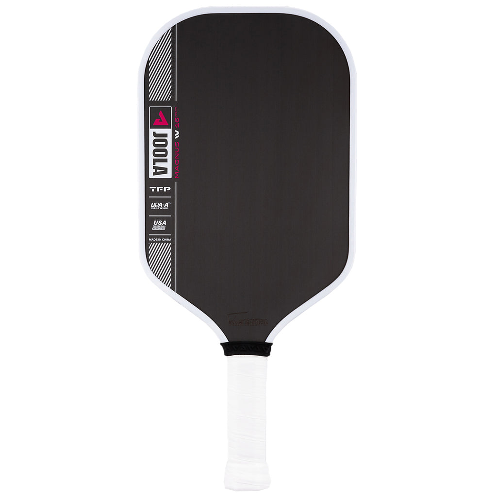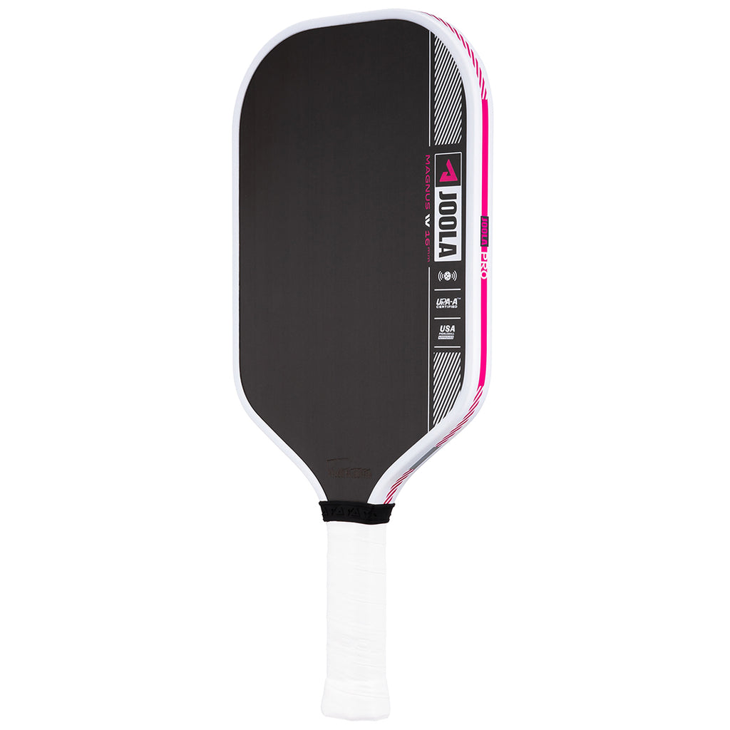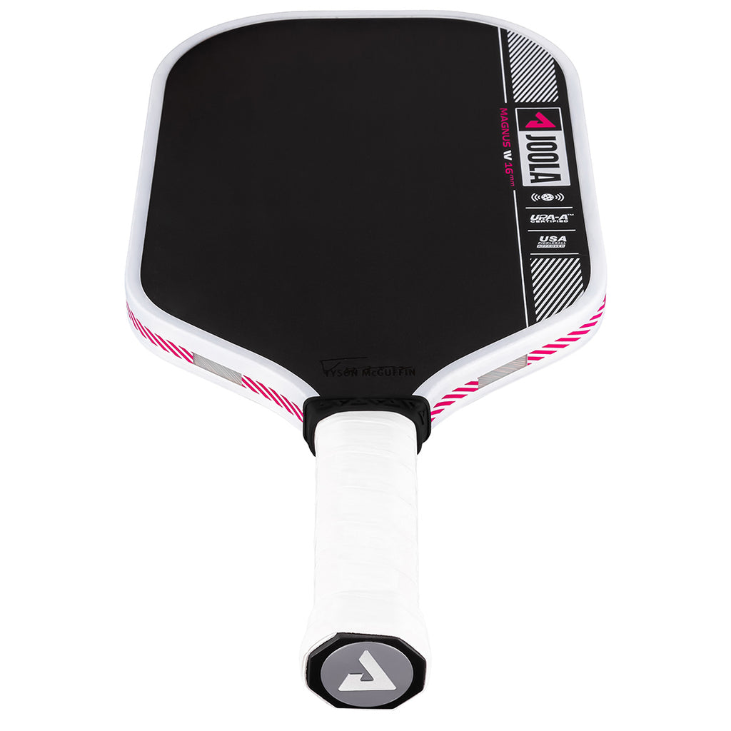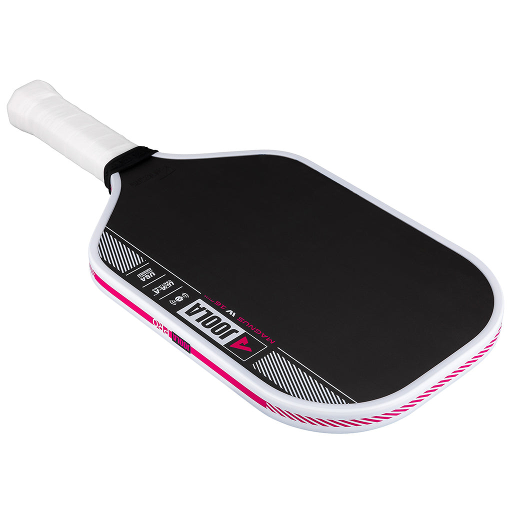 Advanced level players will enjoy the feeling this paddle will provide with a 16mm frame. The Magnus Pro IV pickleball paddle is equipped with an elongated paddle shape and shorter handle to let you play your game with added power and reach. An ideal paddle for players who utilize a one-handed backhand. By adding JOOLA’s patent-pending TechFlex Power (TFP) technology to optimally distribute weight throughout the paddle, you can increase overall play time and get real-time feedback to manage your game. Magnus IV’s larger sweet spot allows for better accuracy and forgiveness on mishit balls. Time to electrify your game. All Pro IV paddles are USAP PBCoR 43 certified and UPA-A pro certified.