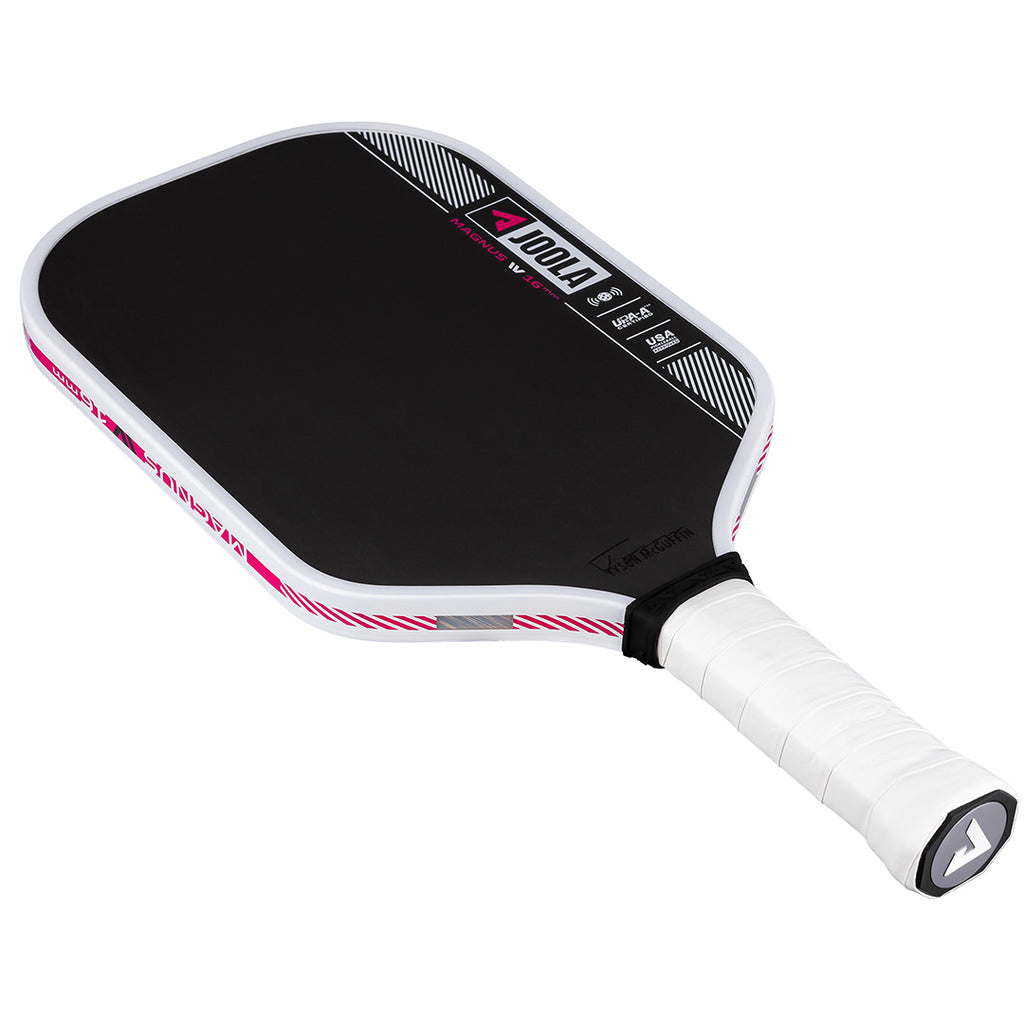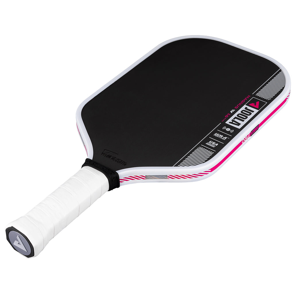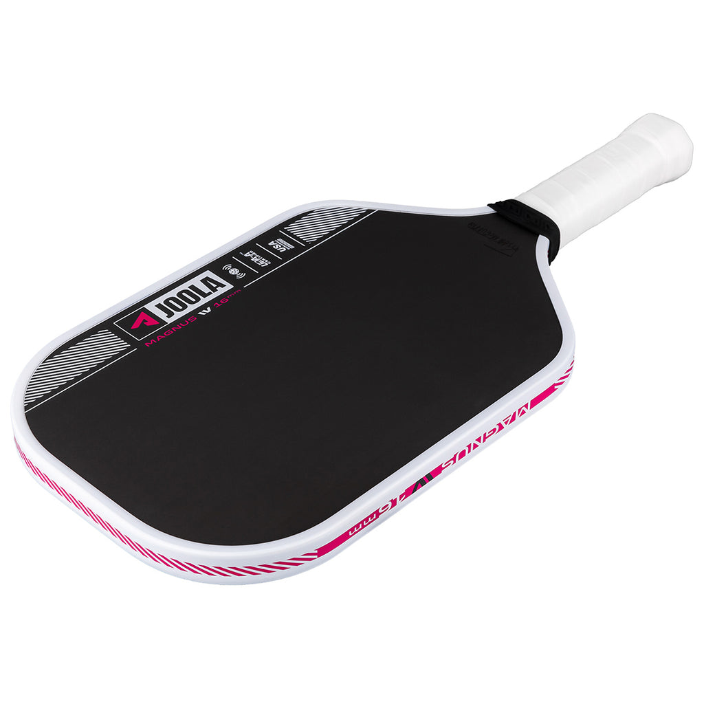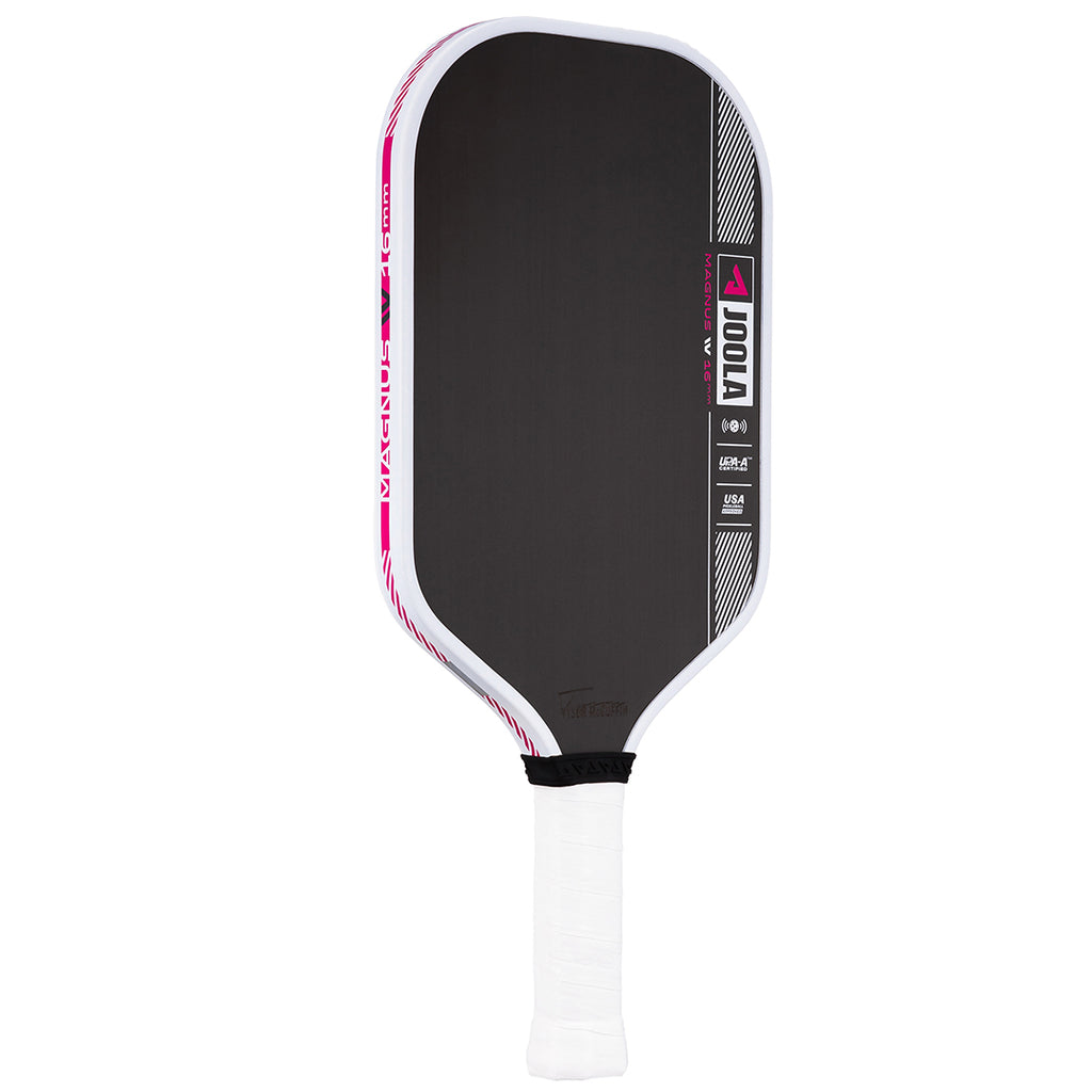 Advanced level players will enjoy the feeling this paddle will provide with a 16mm frame. The Magnus Pro IV pickleball paddle is equipped with an elongated paddle shape and shorter handle to let you play your game with added power and reach. An ideal paddle for players who utilize a one-handed backhand. By adding JOOLA’s patent-pending TechFlex Power (TFP) technology to optimally distribute weight throughout the paddle, you can increase overall play time and get real-time feedback to manage your game. Magnus IV’s larger sweet spot allows for better accuracy and forgiveness on mishit balls. Time to electrify your game. All Pro IV paddles are USAP PBCoR 43 certified and UPA-A pro certified.