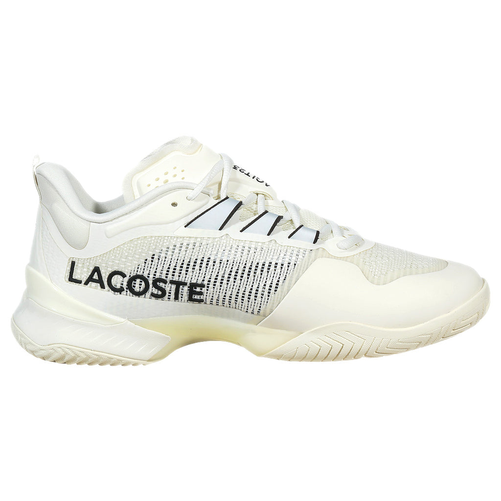 Off white with the Lacoste logo for a stylish and supportive tennis shoe. The AG-LT23 Ultra is a high-performance shoe for professional play from Lacoste, tennis experts since 1933. This ultra-lightweight design, developed in association with tennis star Daniil Medvedev, features innovative Piqué Weave, LSR Foam and Line Grip technologies for a competitive advantage on any court.
