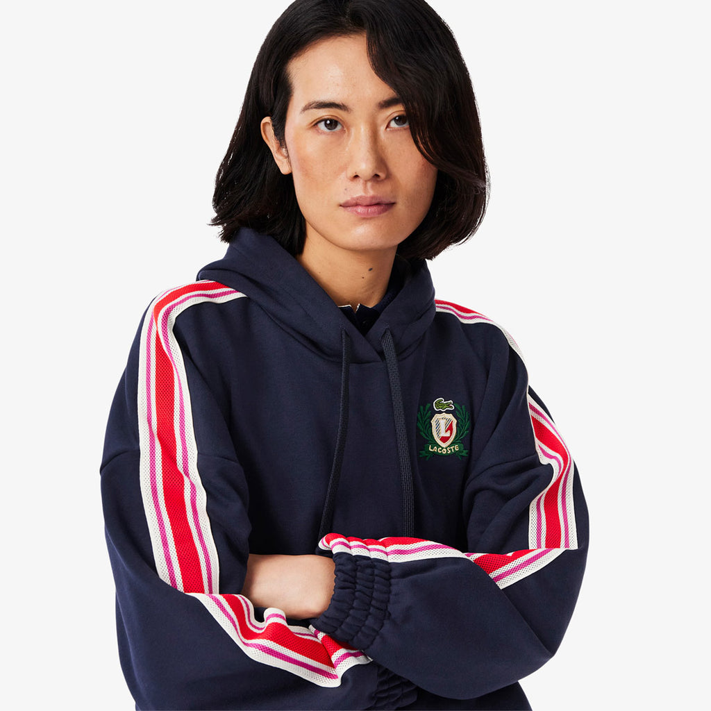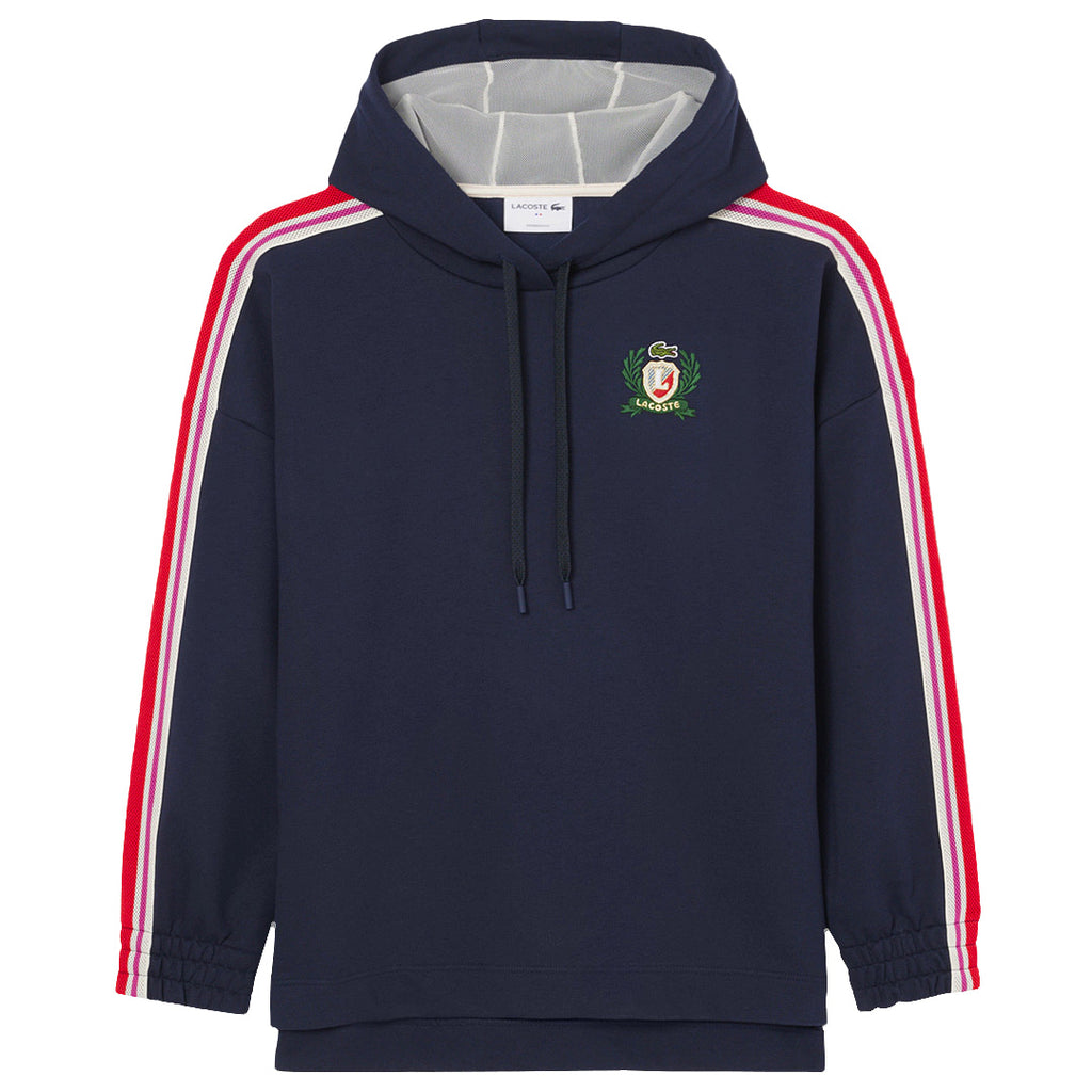 Stylish and warm hoodie with that classic Lacoste fashion. Fashion meets sportswear in this hoodie, made in the historic Lacoste workshops in Troyes, France. Featuring an oversized cut, an embroidered shield, and contrast mesh side stripes, for a preppy look that blends tradition with modernity.