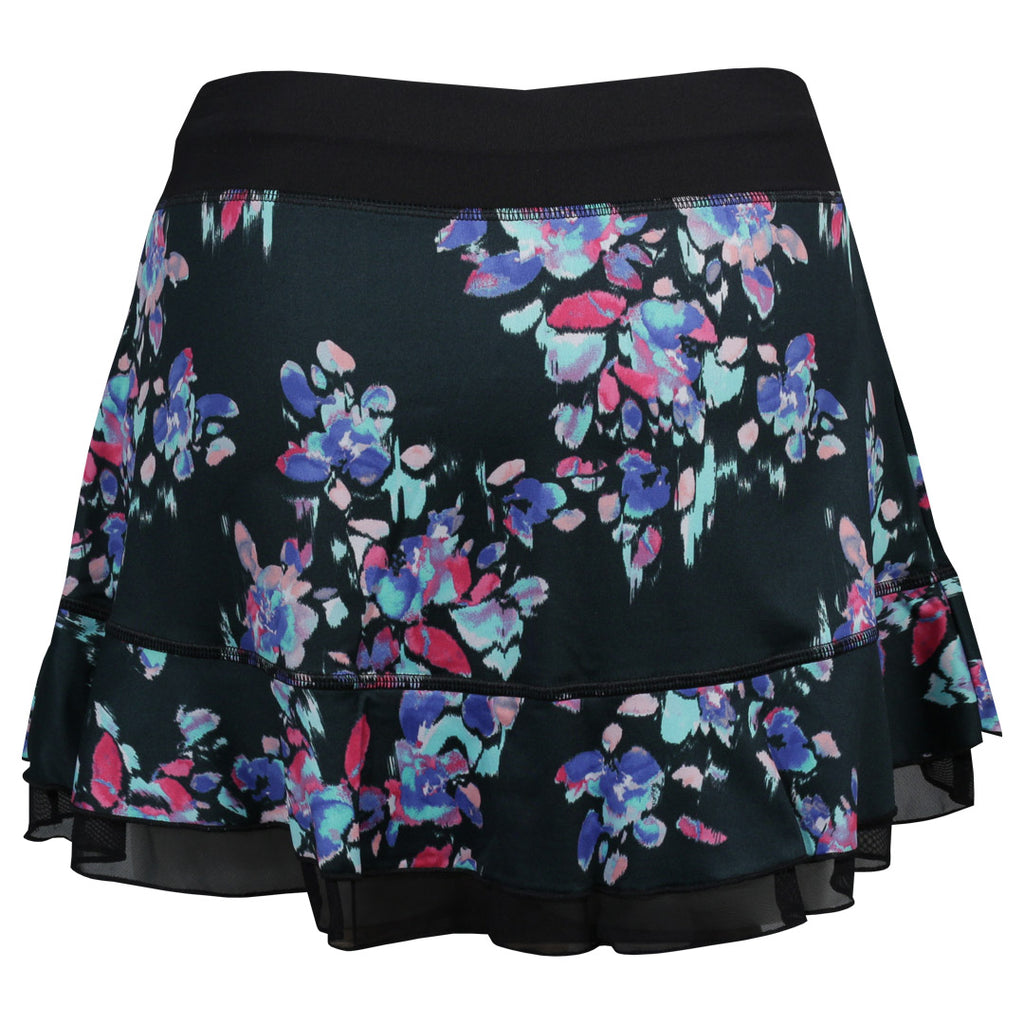 Noir flowery design accenting dark and colourful. Serve up an ace in Sofibella’s 13” women's tennis skort. Crafted with Sofibella’s Ultra-Poly fabric, which has a breathable and feather weight feel. Crafted with Sofibella’s Sofi-premier fabric, built-in shorties, and wide elastic waistband. This women's tennis skort offers UV protection with Sofi-Premier exclusive top performance fabrics that are super soft and stretchy, moisture wicking and quick drying. This sporty women's tennis skort can be combined with any Sofibella UV Color top or with any tennis piece from your wardrobe.