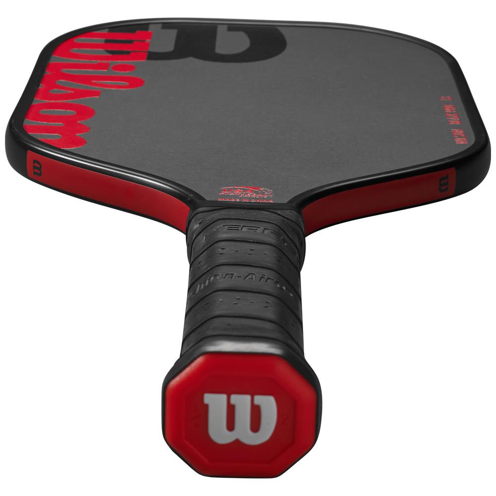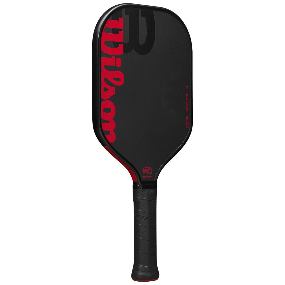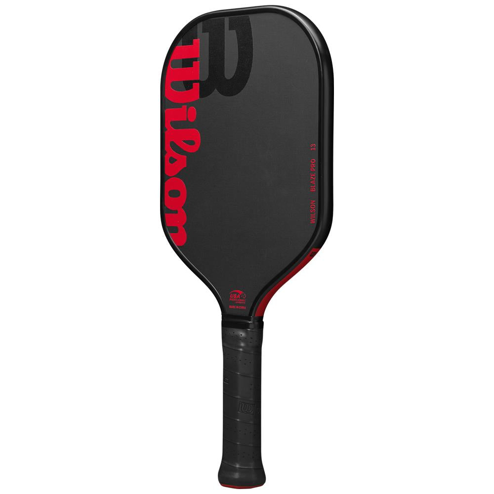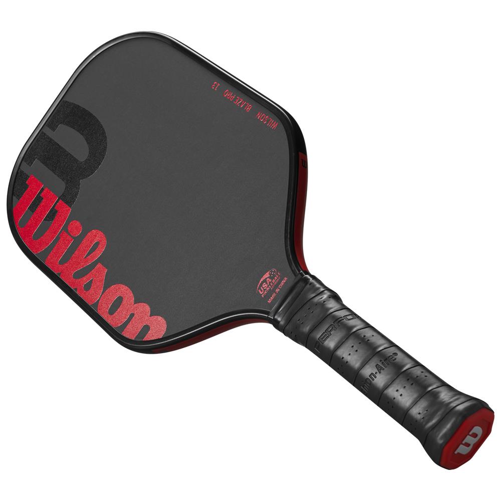 Snipe the corners of the court with ease. Once you've mastered control and can put the ball anywhere on the court with precision, maximize your power with Wilson's Blaze Pro 13 Pickleball Paddle. Designed for competitive players who can hit the ball deep into the court or drop it just over the net, the elongated paddle features a hybrid face of raw carbon fiber with a fiberglass base to help you maximize power and generate spin. Its Thermoformed Edge wraps carbon fiber around the perimeter of the frame, which increases its stability, expands the sweet spot and reduces vibrations.