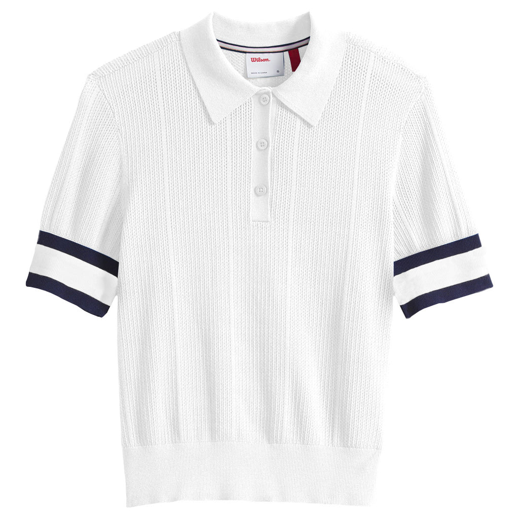 Breathable and cute. The Essex Polo is a fully-fashioned tennis- and golf-inspired top, designed with a breathable, open sweater knit and Coolmax yarn for quick drying. This top functions masterfully in action, with a rib band at the sleeves and the waist to help keep the garment in place when you're moving or swinging.