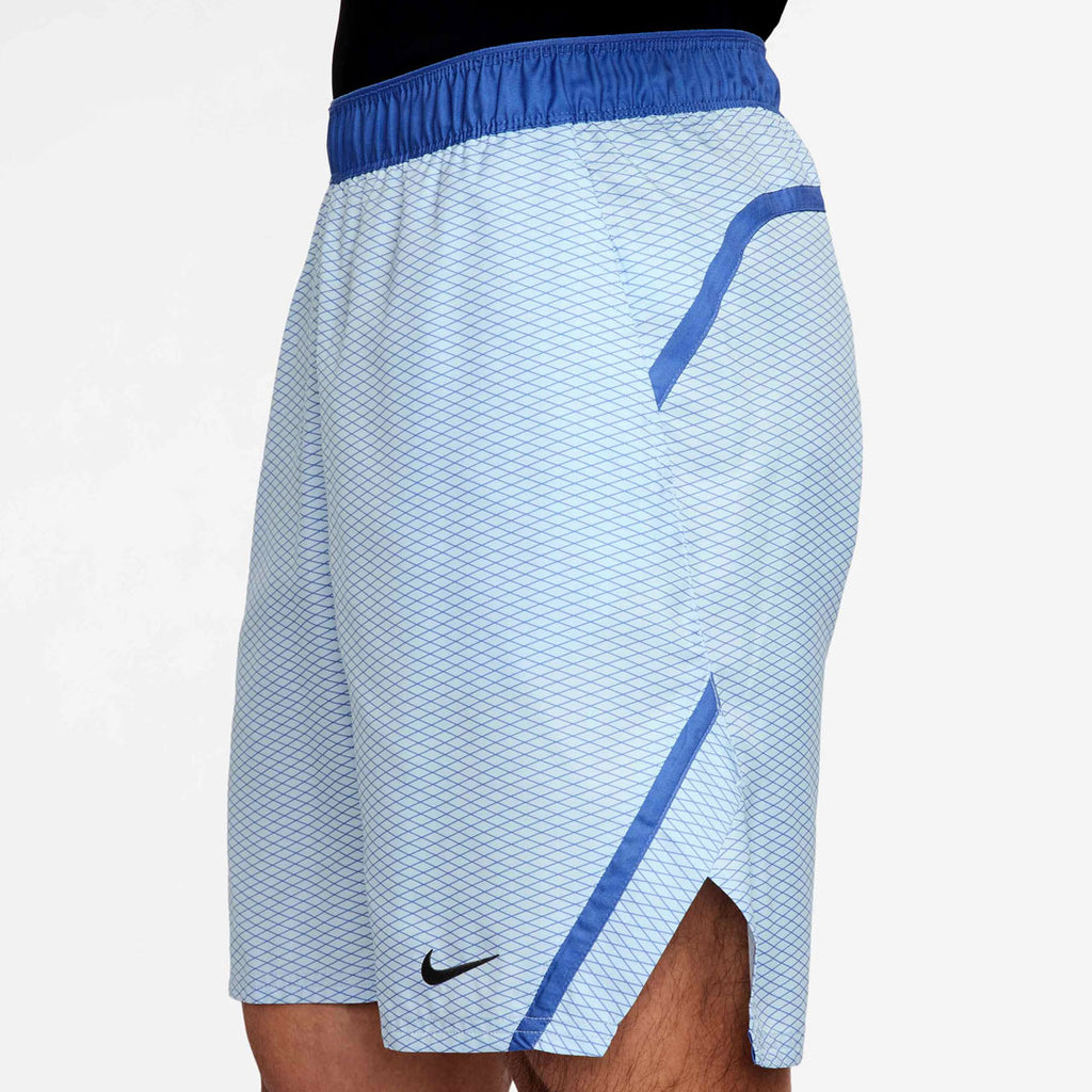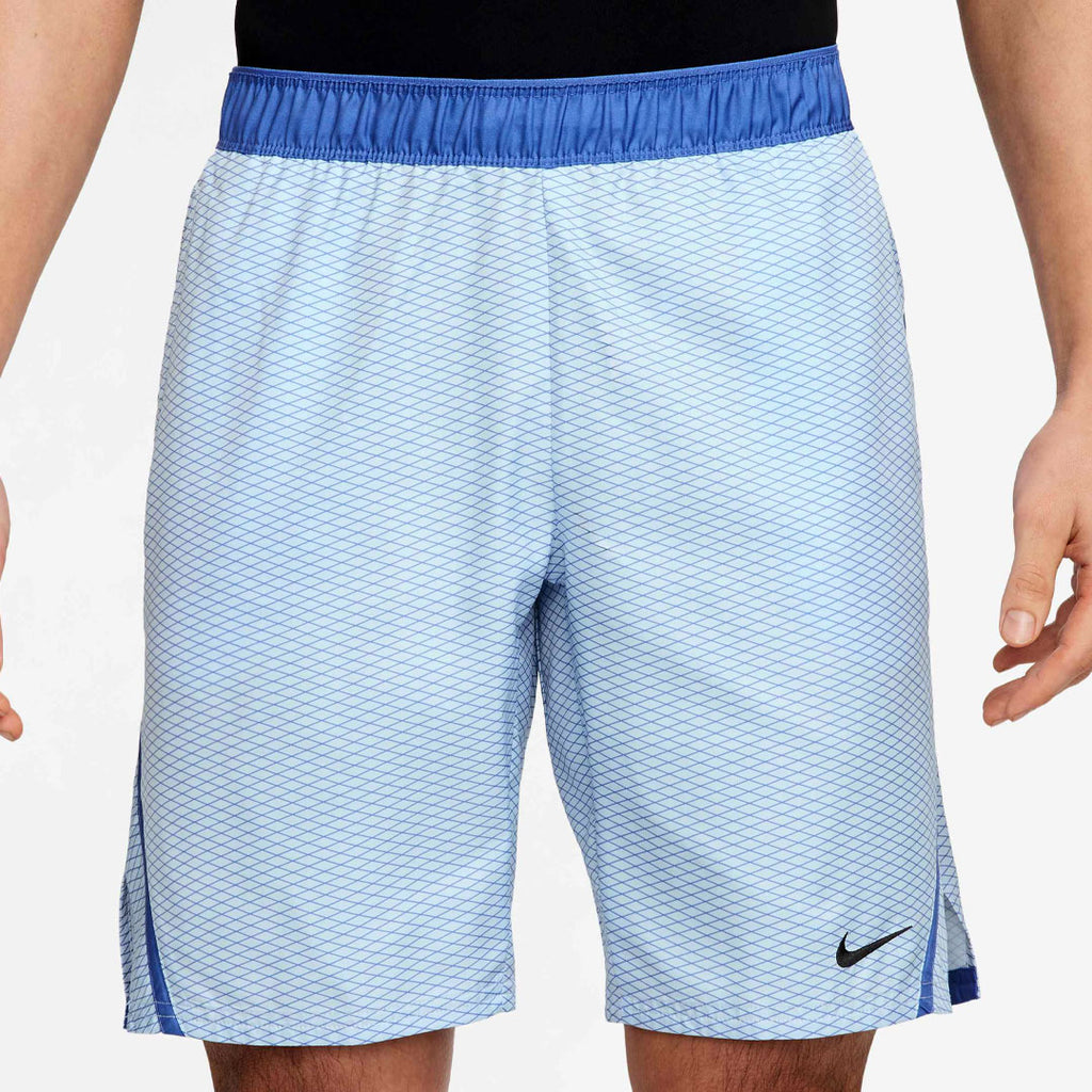 Strike them out on court in celestine aqua with interesting print shorts.  Always match ready, these 7" tennis shorts are made with a lightweight woven fabric and sweat-wicking Dri-FIT technology to help keep you cool when the match heats up.
