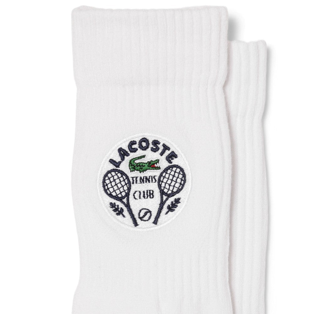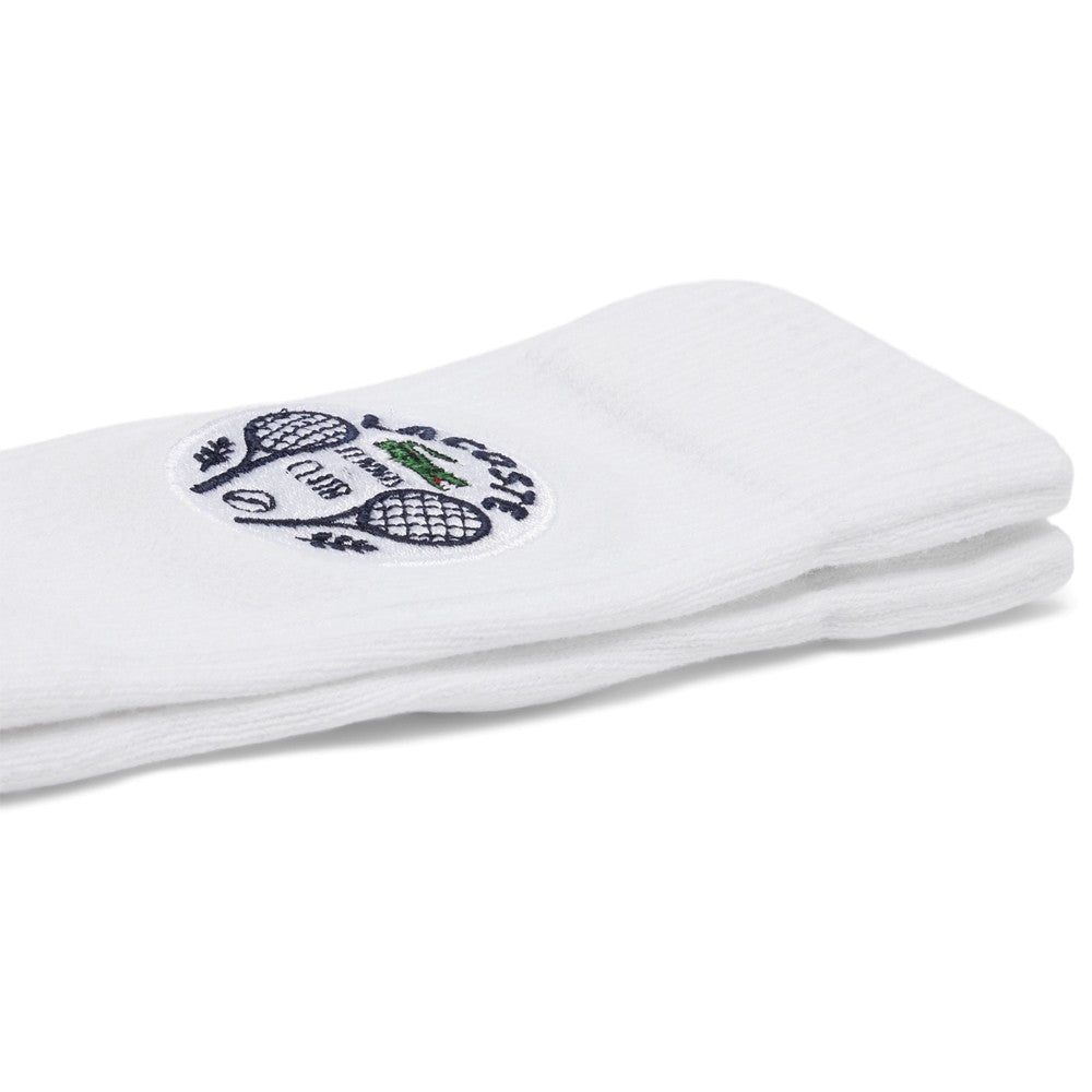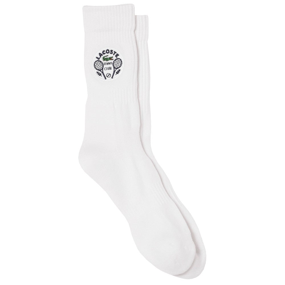 White socks with a Lacoste logo. For optimum comfort on the court, choose these Lacoste socks specially designed for tennis. They feature padded areas for maximum protection during your matches. Pair them with the matching polo shirt and shorts for a complete sports look.