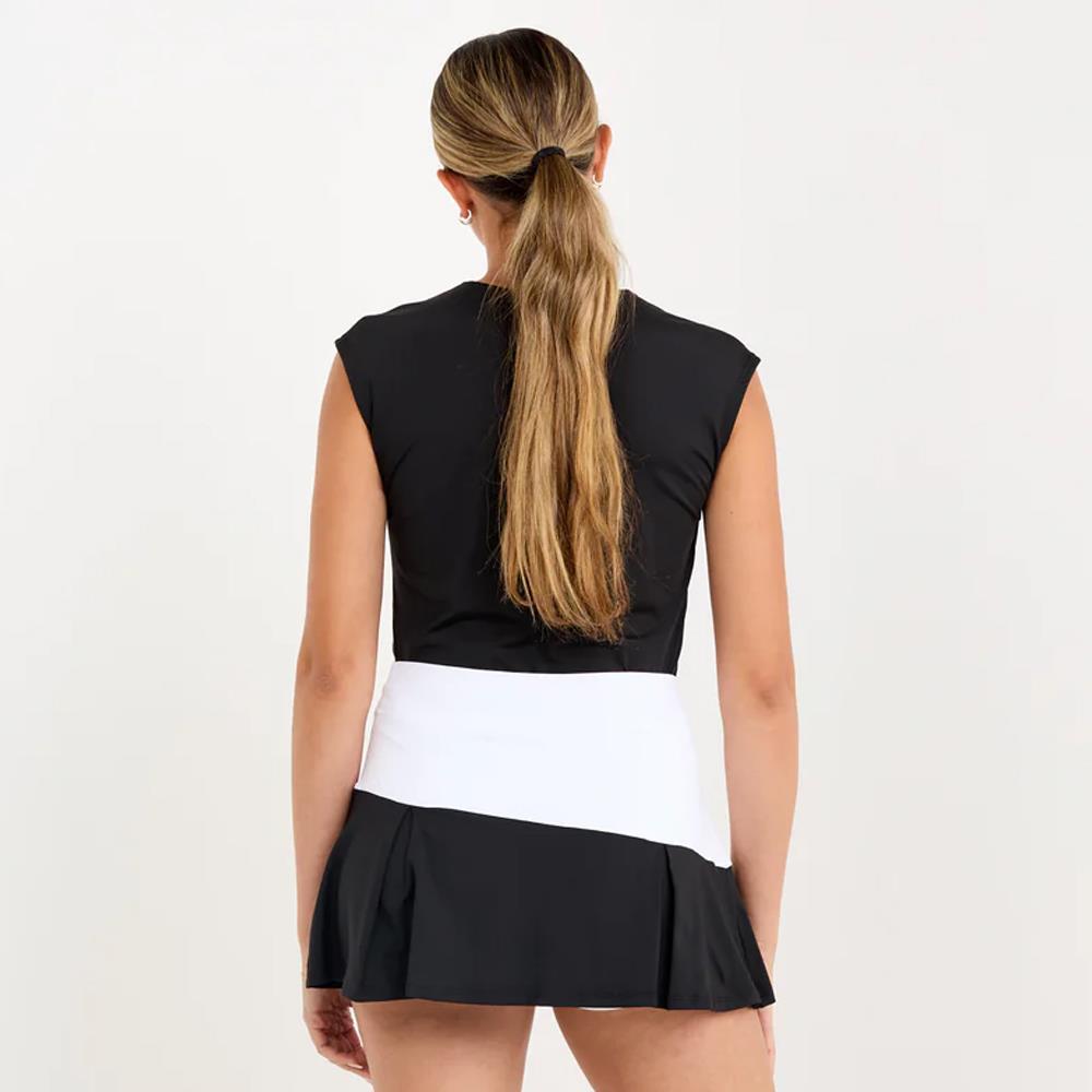 Elevate your tennis game with style and comfort in Sofibella's 13" tennis skort! Crafted from luxurious Sofi-premier fabric, this black-and-white skort pairs effortlessly with any monochrome collection top for a chic, polished look. Combining fashion and function, this skort features soft, stretchy, and high-performing materials with 50+ UPF UV protection. The moisture-wicking, quick-drying, and pilling-resistant properties ensure a cool and confident experience on the court. Curved style lines add a touch of femininity to this sporty piece, complete with built-in shorties for ultimate versatility.