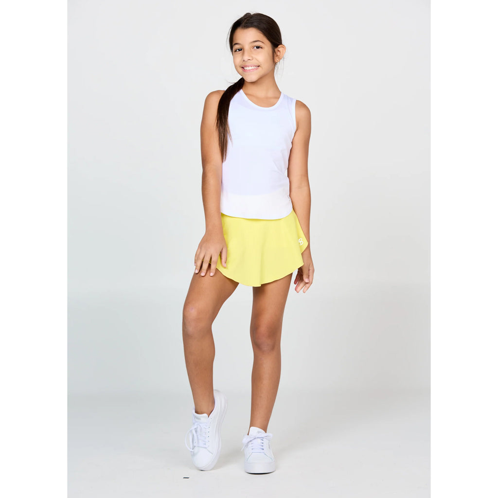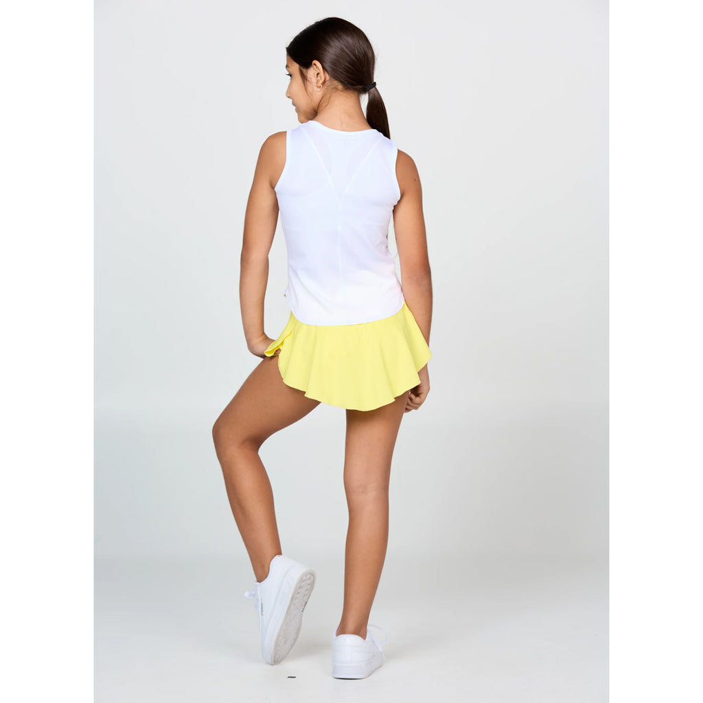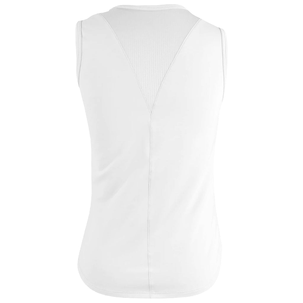 Terrific tank in classic sleek white. For this girls' tennis tank top simplicity is key. The most flattering fit is combined with high-performance fabrics. You will love this contemporary girls' tennis tank top with mesh V insert in the back for extra ventilation while playing. This style is so easy to match with a multitude of bottoms in this collection as well as with staple pieces. Features all the important issues we need to address with our performance attire: UV protection, moisture wicking, quick drying, four way stretch, and pilling resistance.