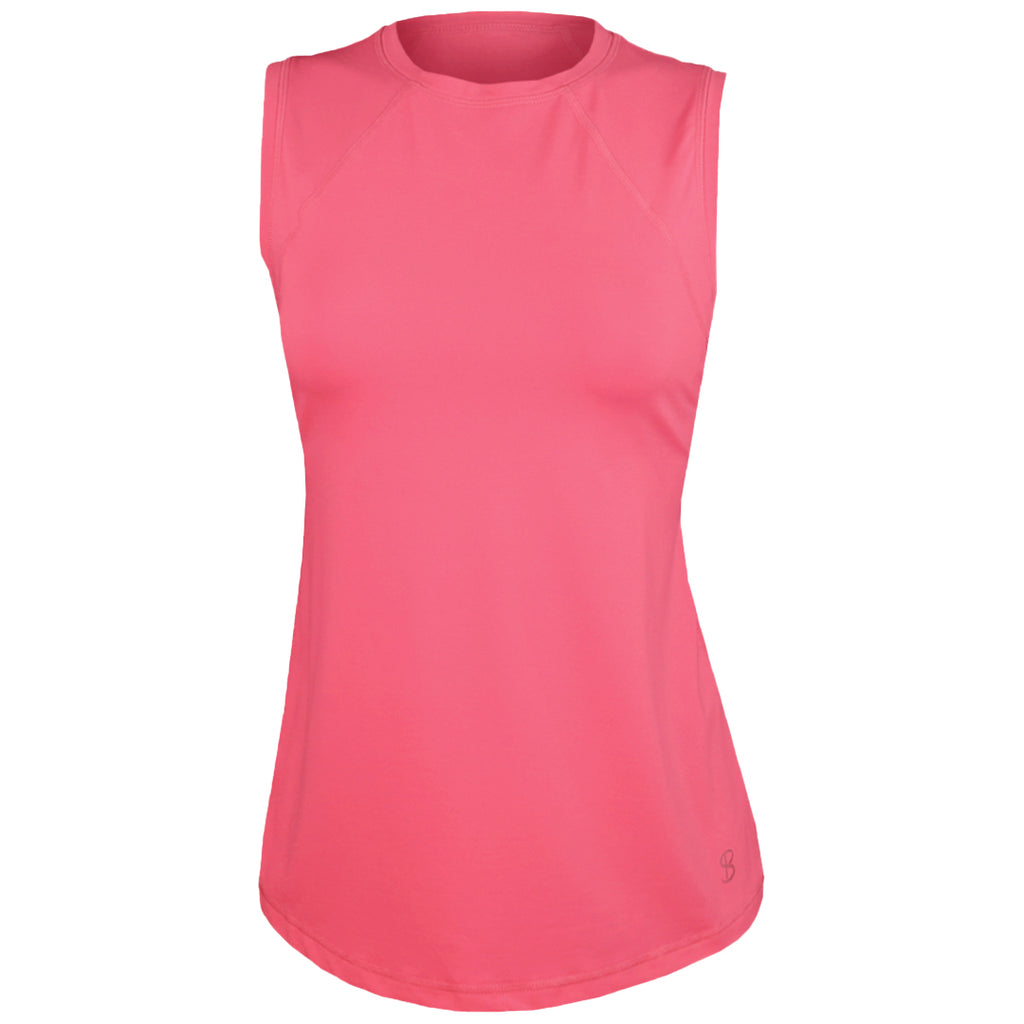 Cute pink colour on a terrific athletic tank. Whether you're swinging it out or serving it up, this UV protected women's sleeveless tennis top has got you covered on and off the tennis court. Our women's sleeveless tennis tops are highly resistant to pilling, elongating the life of the garment while they offer UV protection. Crafted with Sofibella’s signature soft, breathable, and super soft and stretchy “Sofi-Premier” fabric. Available in many different colors!