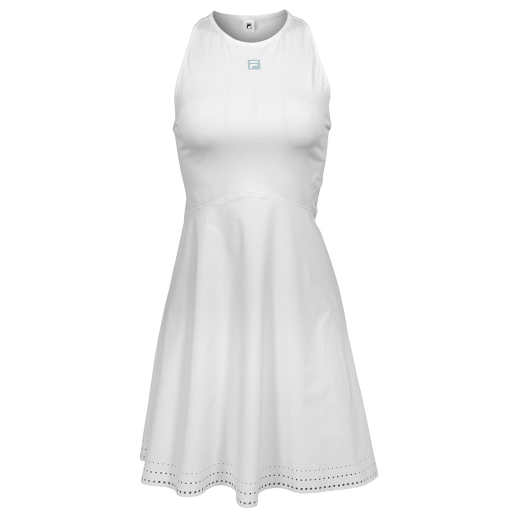 Elegant tennis dress to redefine your look on court in sleek white. Redefine your performance in this seamless dress, worn by Fila’s top athletes and engineered for the modern tennis champion. The seamless yarn bodice offers a second-skin feel with targeted stretch for unrestricted movement, while the breathable woven skirt and freecut shortie provide lightweight coverage. Pinstripe details and contrast stitching add a touch of our signature FILA style, ensuring you look as good as you play.