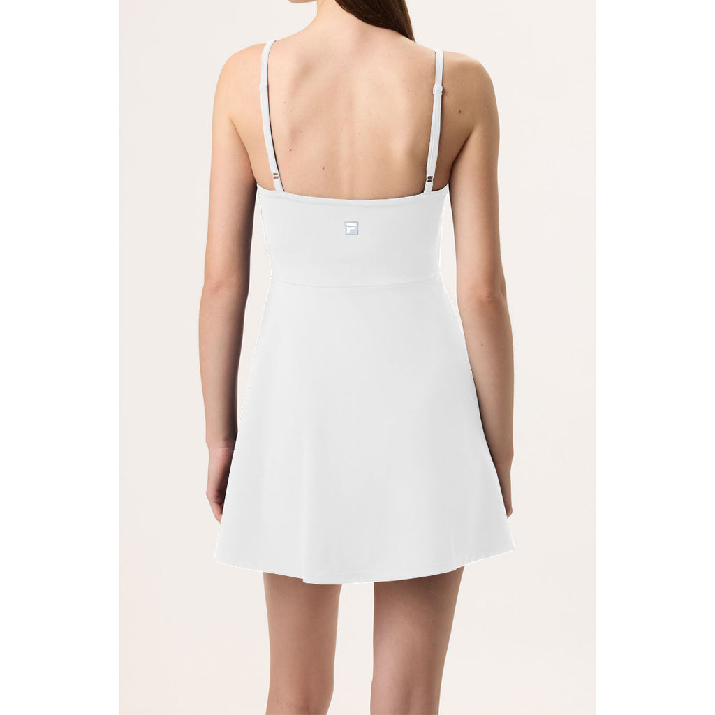 Classic and supportive tennis dress from Fila. Game. Set. Match. This Fila tennis dress is made with a second skin stretch knit that moves as you move while giving you just enough flex. Plus, its adjustable spaghetti straps, scoop neck design (with removable cups), and shorts let you focus on your game while staying on top of your style.
