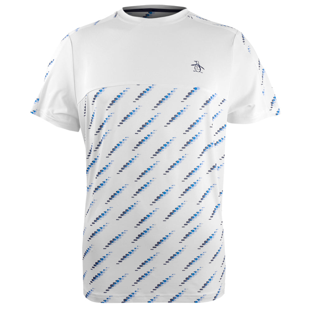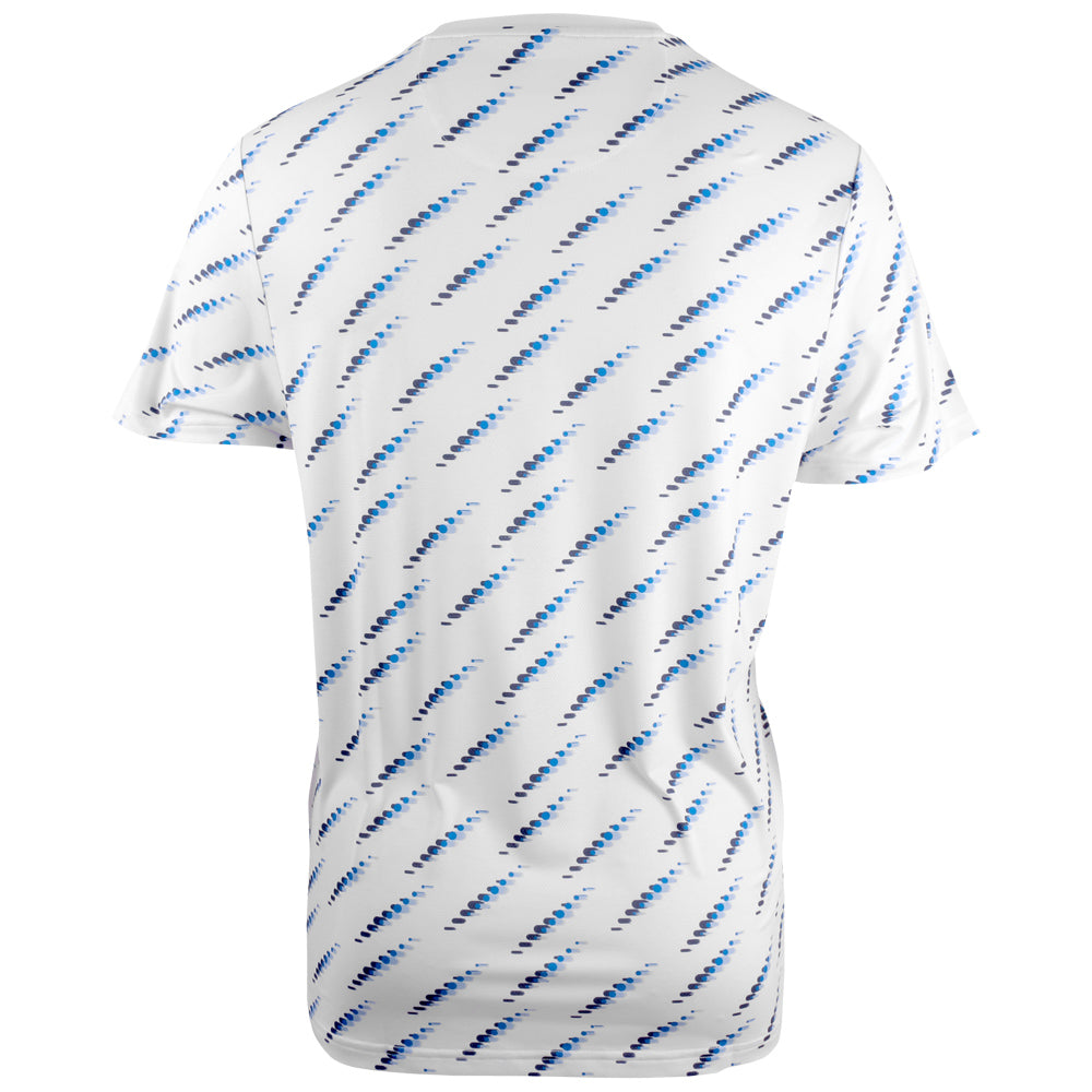 Sleek white with blue colour on a great, breathable tee. Ace your tennis performance with this lightweight, stretchy tee made from recycled materials. The single knit fabrication ensures flexibility and comfort, while moisture-wicking technology keeps you cool and dry. Game, set, match!