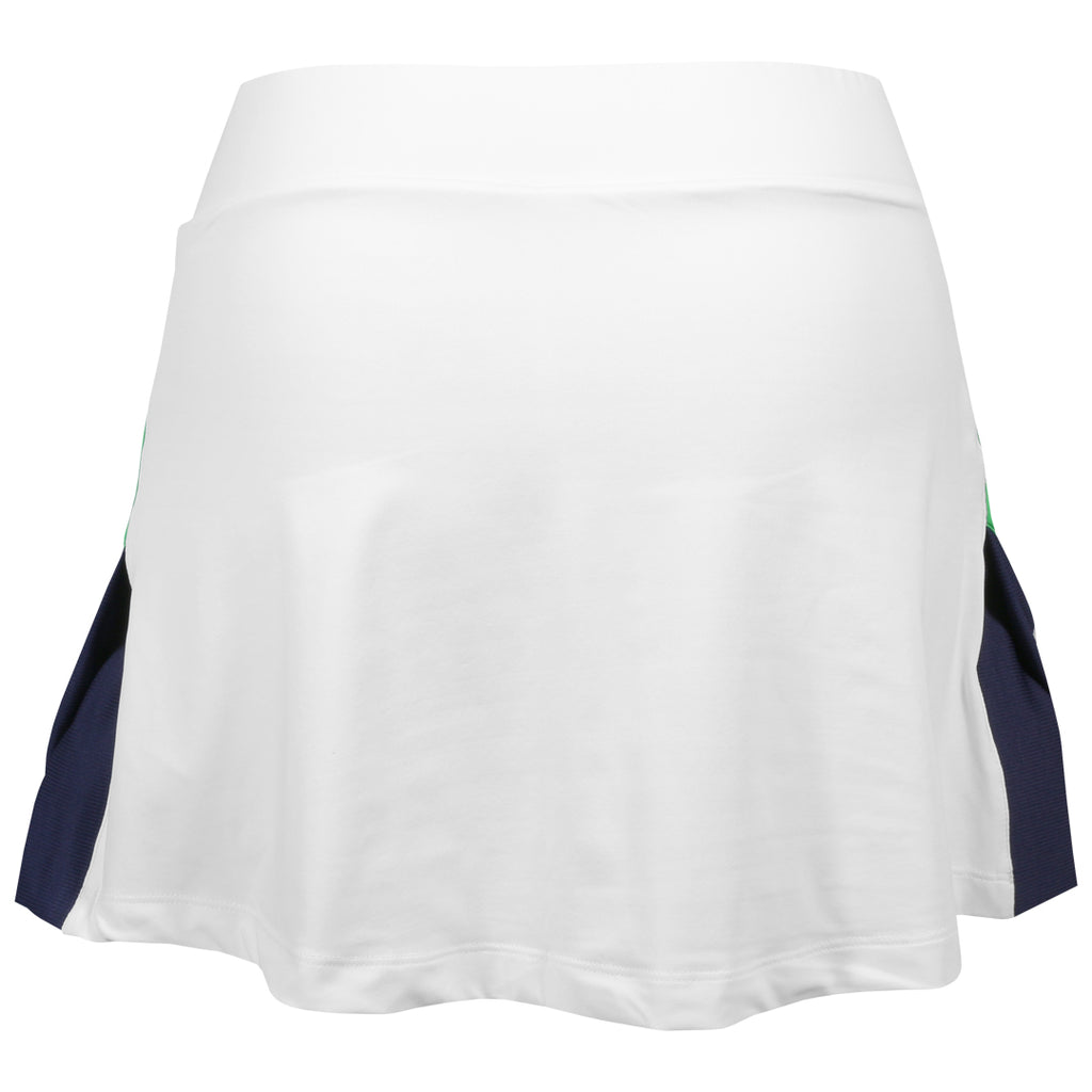 Flity and cute skort to look great on court. Minimalist in form, mindful in function—the Green Spirit 13" Tennis Skort is a fresh interpretation of a court essential. Designed in crisp white with sleek Zen and Navy geometric insets at the sides, this skort brings a quiet boldness to your tennis wardrobe, inspired by the balance of motion and mindfulness. The flat waistband offers a smooth, supportive fit that stays in place through every match, while the slightly flared A-line silhouette adds a touch of femininity without compromising performance. Built-in white shorties provide breathable coverage, so you can move with ease, focus, and confidence. Crafted with Sofibella’s premium performance fabric, this skort delivers 50+ UPF sun protection, four-way stretch, moisture-wicking, quick-drying properties, and resistance to pilling—ensuring comfort and polish from first serve to last set.