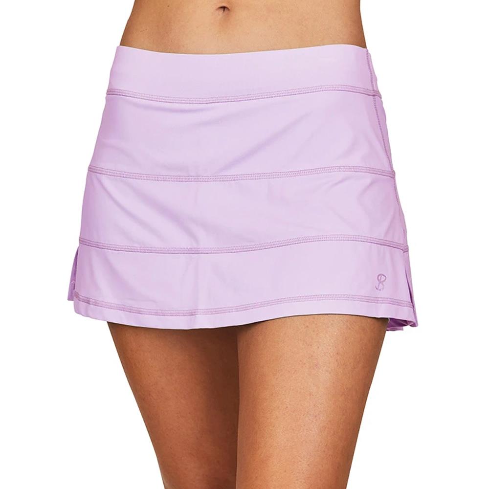 Flattering style in lovely lavender. Serve up an ace in this 13” tennis skort. Crafted with Sofibella’s Sofi-premier fabric, built-in short and a feminine back pleat detail. This sporty piece can be combined with any Sofibella UV Color top.