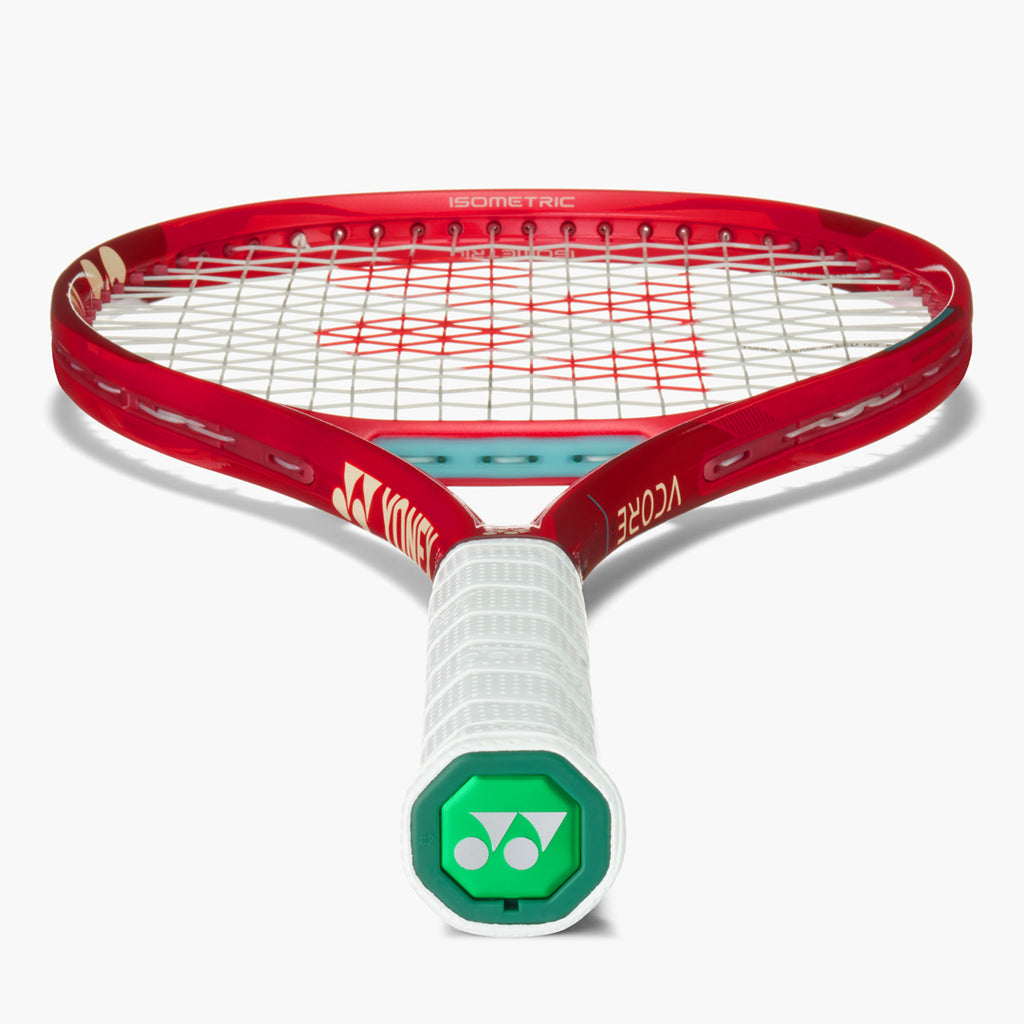 The latest VCORE introduces the most advanced spin-focused engineering in the series’ history, beginning with Yonex’s signature ISOMETRIC square-shaped frame and a newly sculpted upper hoop that together create the line’s largest-ever sweet spot for enhanced forgiveness and cleaner contact. Expanded inner grooves increase frame flex for improved ball hold and feel, reducing the harshness of off-centre hits while boosting spin potential, and newly designed grommets allow greater string movement to generate stronger snapback. The frame has also been aerodynamically refined based on different swing types to reduce air resistance, enabling smoother racquet head speed and sharper, higher-spinning shots. Complementing these structural upgrades, Yonex’s proprietary carbon technologies integrated throughout the frame, yoke, shaft, and grip enhance power, stability, and control—working in unison to give players a confident, consistent, and high-spin response on every strike.