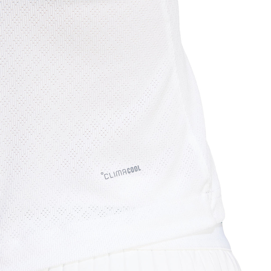 Elegant tank inspired by the greats. Part of an adidas collection created for the world's most famous tennis tournament, this tank top is designed to let you mix and match your own style without sacrificing performance. Slim-fitting for all-action play, it shows off a classic Trefoil next to its deep V-neck collar. CLIMACOOL wicks and disperses sweat for cool, dry and distraction-free performance.