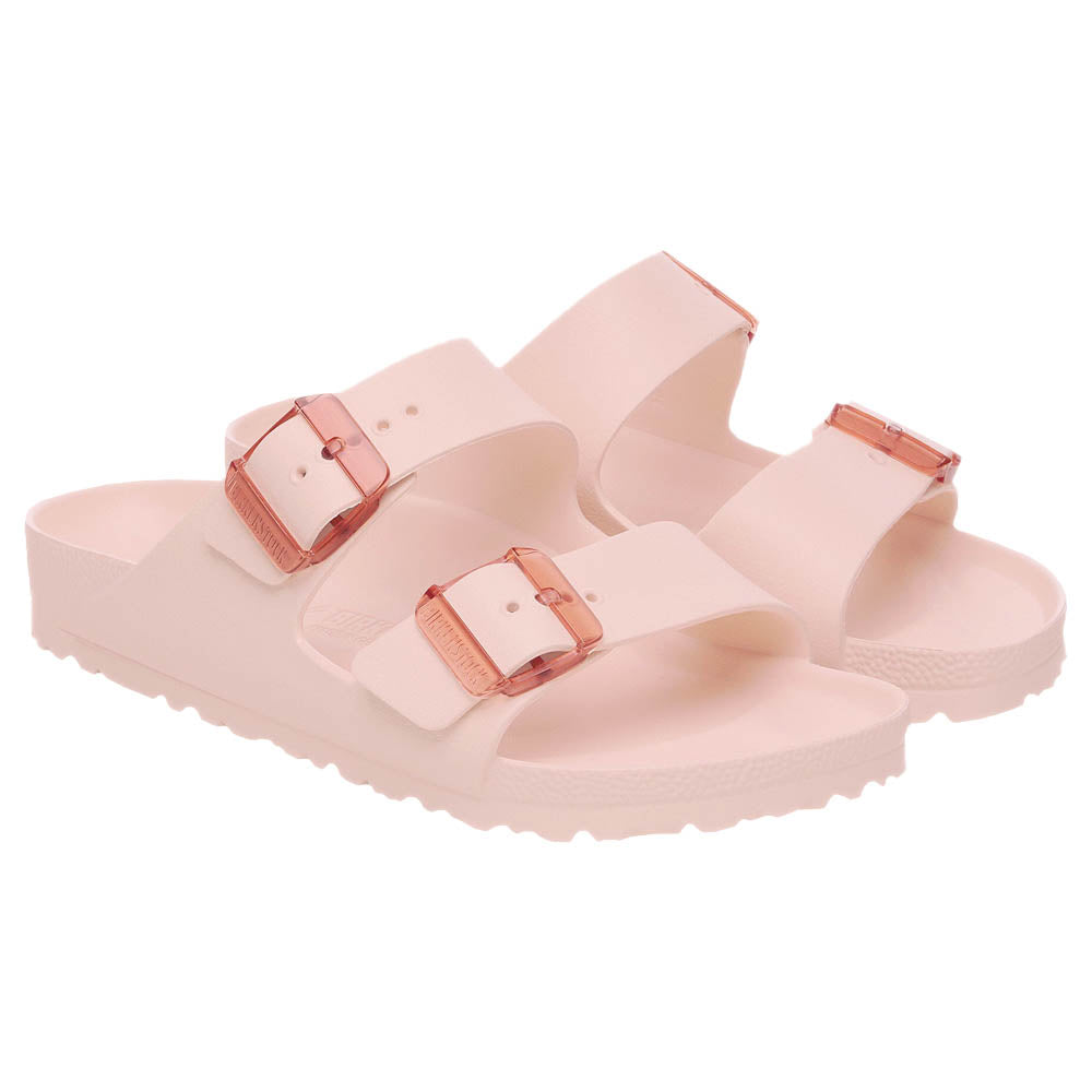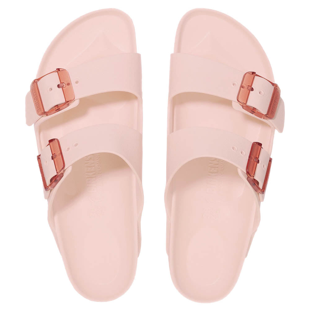 Comfy sandals for any occasion in soft, light rose. Birkenstock’s best-selling sandal in an ultra-lightweight style. The Arizona Essentials sandal is made from water-friendly material, giving you a flexible design built on the contoured footbed you love most. With translucent buckles, it's the perfect throw-and-go style for everything from the pool to post-workout.