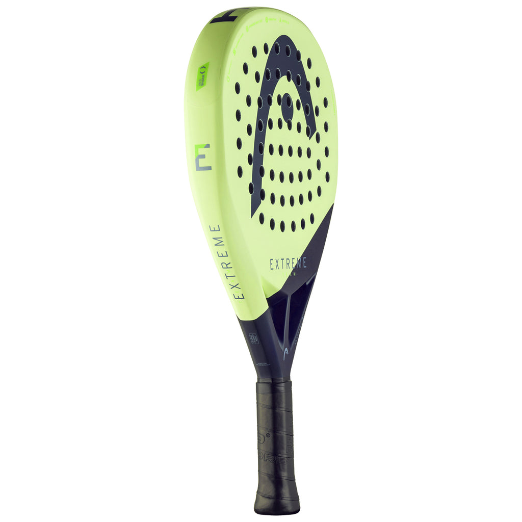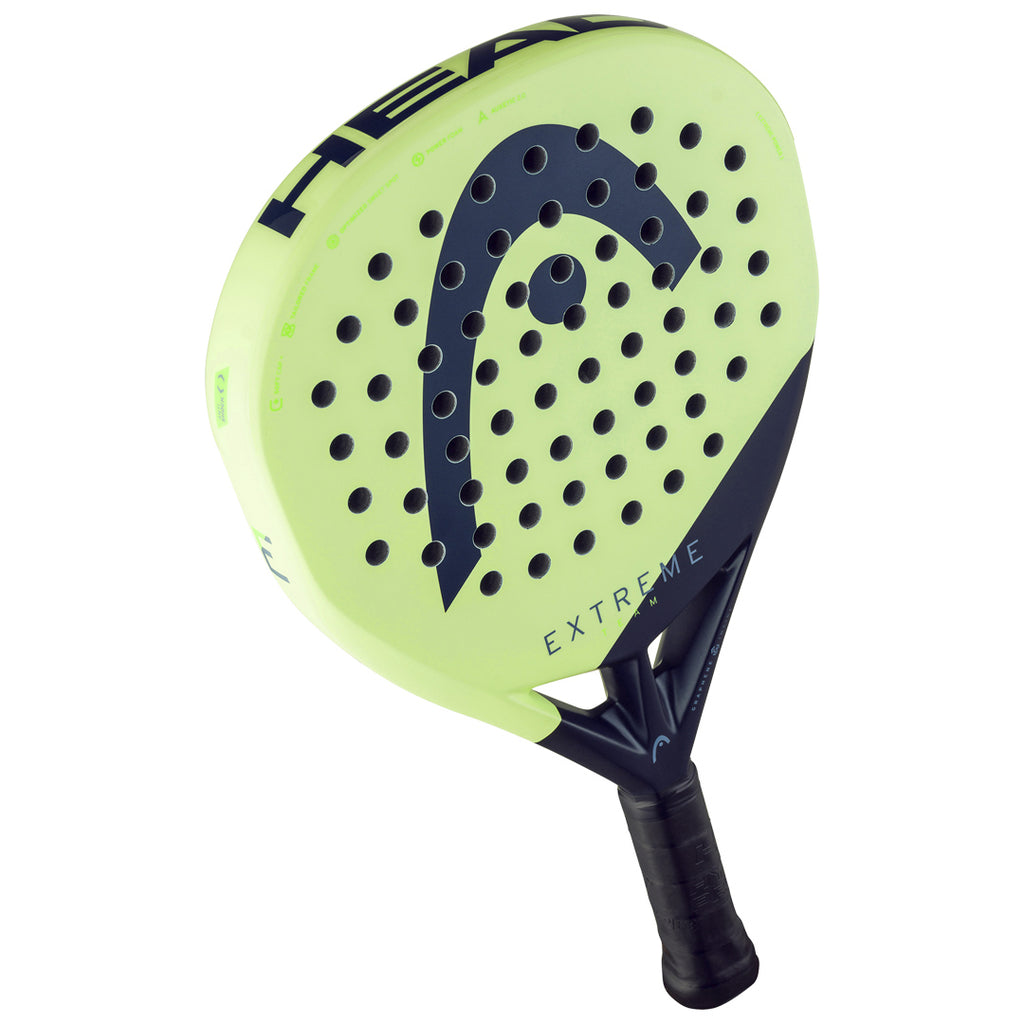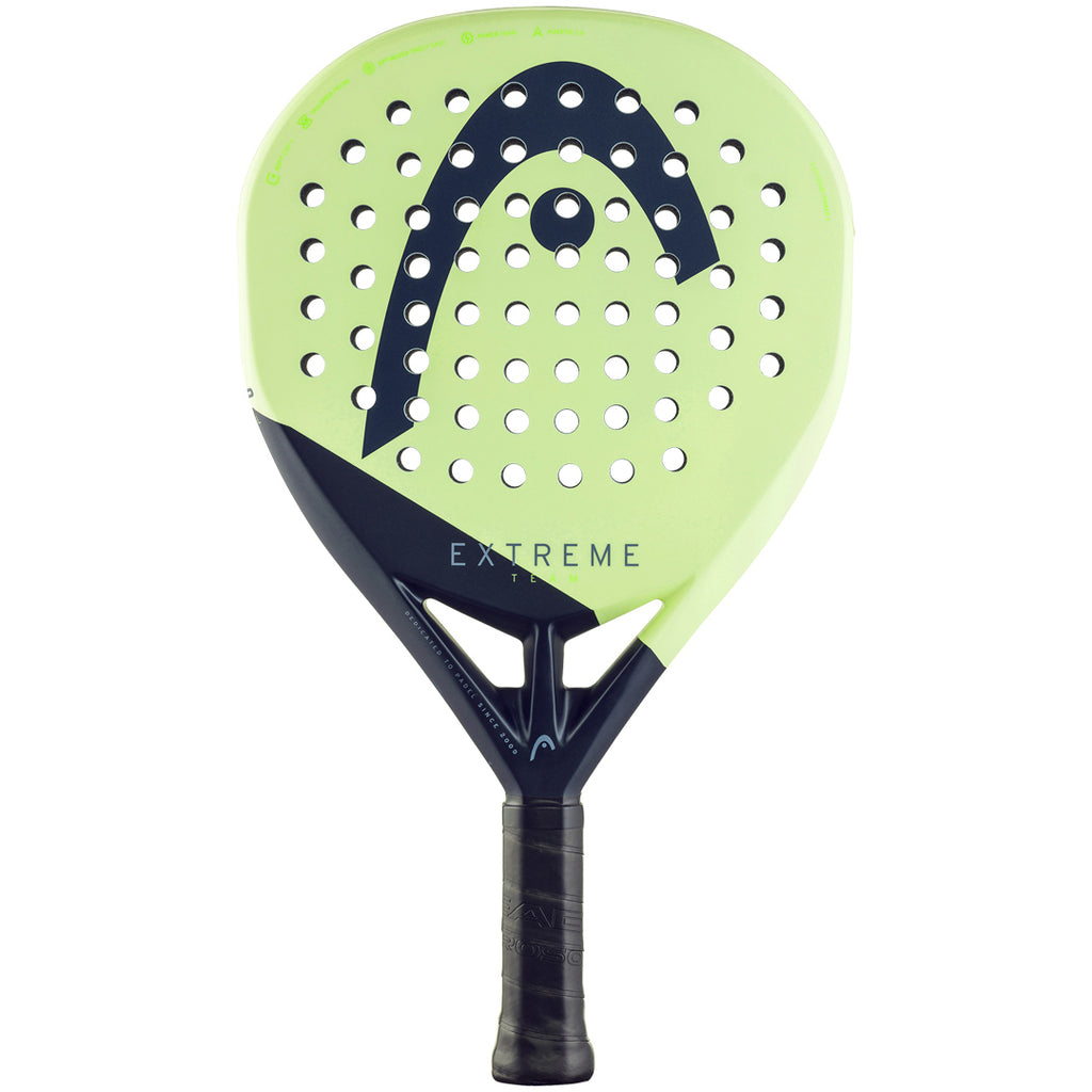 Become an extreme threat on court. With its easy power at slower ball pace, great ball exit and a softer touch, the EXTREME TEAM 2025 is for advanced players who are looking to attack in every situation on the court while keeping a comfortable feeling. With a fiberglass hitting surface that brings a soft feel and flexible touch, this is the softest and most forgiving racquet in the EXTREME series, with a mid-soft stiffness. Made with a diamond-shaped mold for power, and with a mid-high balance for extra leverage on overhead shots, this stable model lets you turn up the power when playing attacking shots such as the smash, vibora, x3 and aggressive volleys. The new drilling pattern enhances the sweetspot while the Power Foam is reactive on fast shots and the Auxetic 2.0 technology supplies a sensational impact feel. The upgrade includes the new Soft Cap + technology with an exchangeable cord system that lets you customize your racquet while keeping the soft material in the butt cap.
