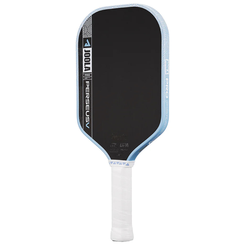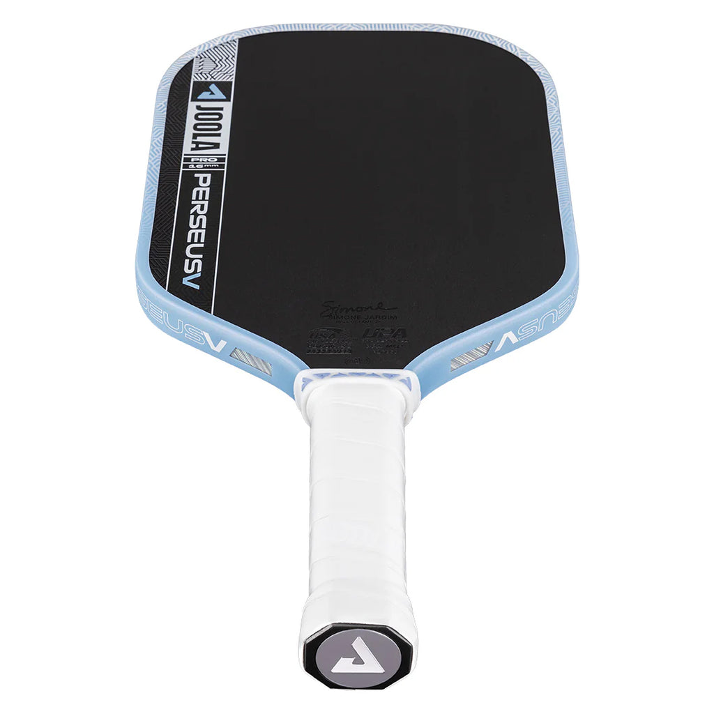 Dynamic paddle with a heftier frame for more power in breezy blue. Unlock JOOLA’s most popular paddle shape with the Perseus Pro V. Rounded corners at the top of the paddle, paired with an elongated profile, keep the sweet spot centered while extending your reach, allowing you to cover deep or sharply angled volleys at the non-volley zone and keep the ball in play without taking an extra step.