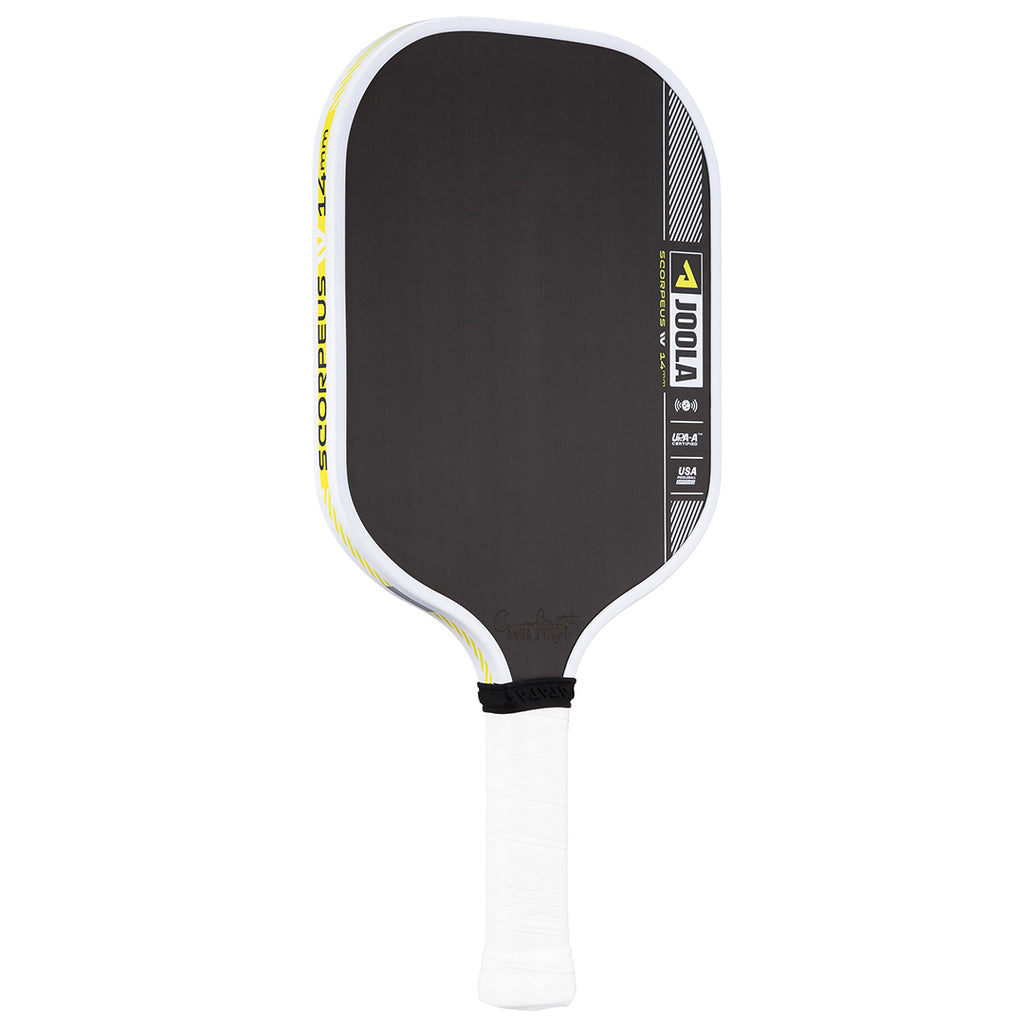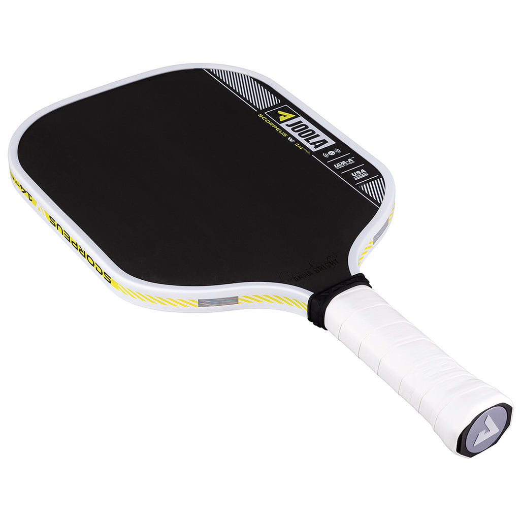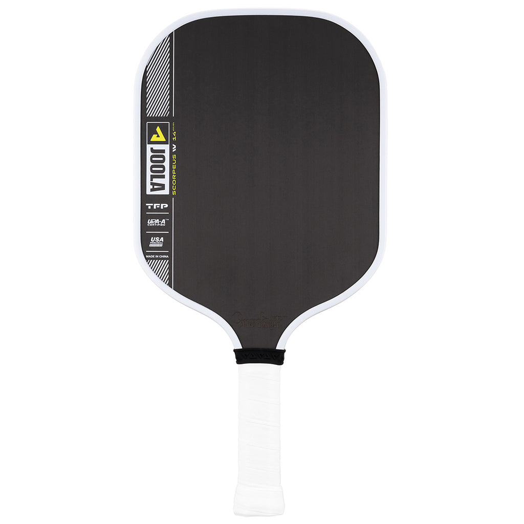 Smash and sting the opponent. The Scorpeus Pro IV 14mm pickleball paddle, powered by TechFlex Power (TFP) technology, delivers a new standard in balance and responsiveness. By maximizing paddle width over length, the Scorpeus Pro IV shape becomes easier to maneuver, allowing your instincts to take over during fast-paced hand battles. Advanced weight distribution throughout the paddle helps reduce fatigue and offers real-time feedback to let you adapt to the flow of the game. Building on the power and feel of JOOLA's innovative Propulsion Core, this paddle redefines consistency and performance every time you take to the court. All Pro IV paddles are USAP PBCoR 43 certified and UPA-A pro certified.