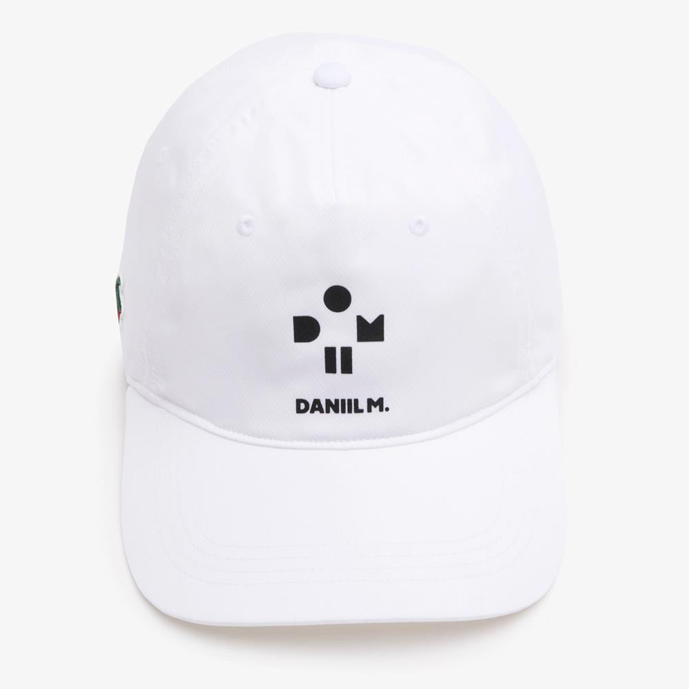 Clean tennis hat inspired by Danlil Medvedev. The accessory of champions, designed to inspire top-notch performances. This Lacoste x Daniil Medvedev signature cap is made to spur you on to victory. On and off the court.