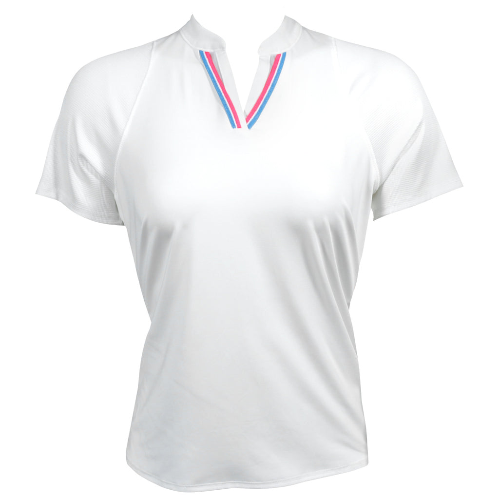 Stylish, sleek white tie back tee that feels great on the skin and will look great on court! The modified neck gives a classic yet modern tennis look, and can be worn on the court, or just for everyday wear. You can choose your style on the back with tying the back or letting it down.