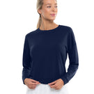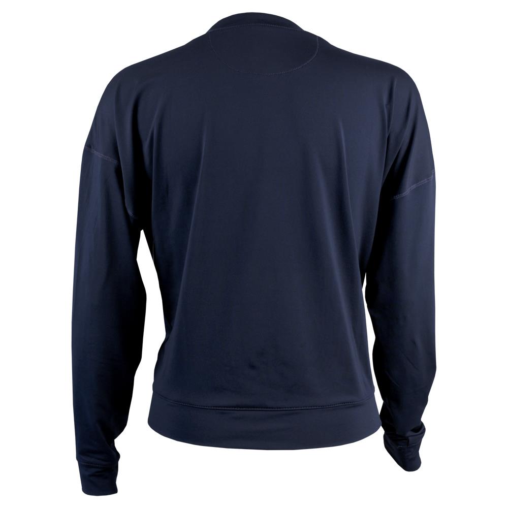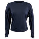 Dark, long sleeve for fun in the sun and year run. This round neck, drop shoulder, midnight long sleeve is made from super lightweight polyester. The fabric is rated UPF 50+ for extra fun in the sun.