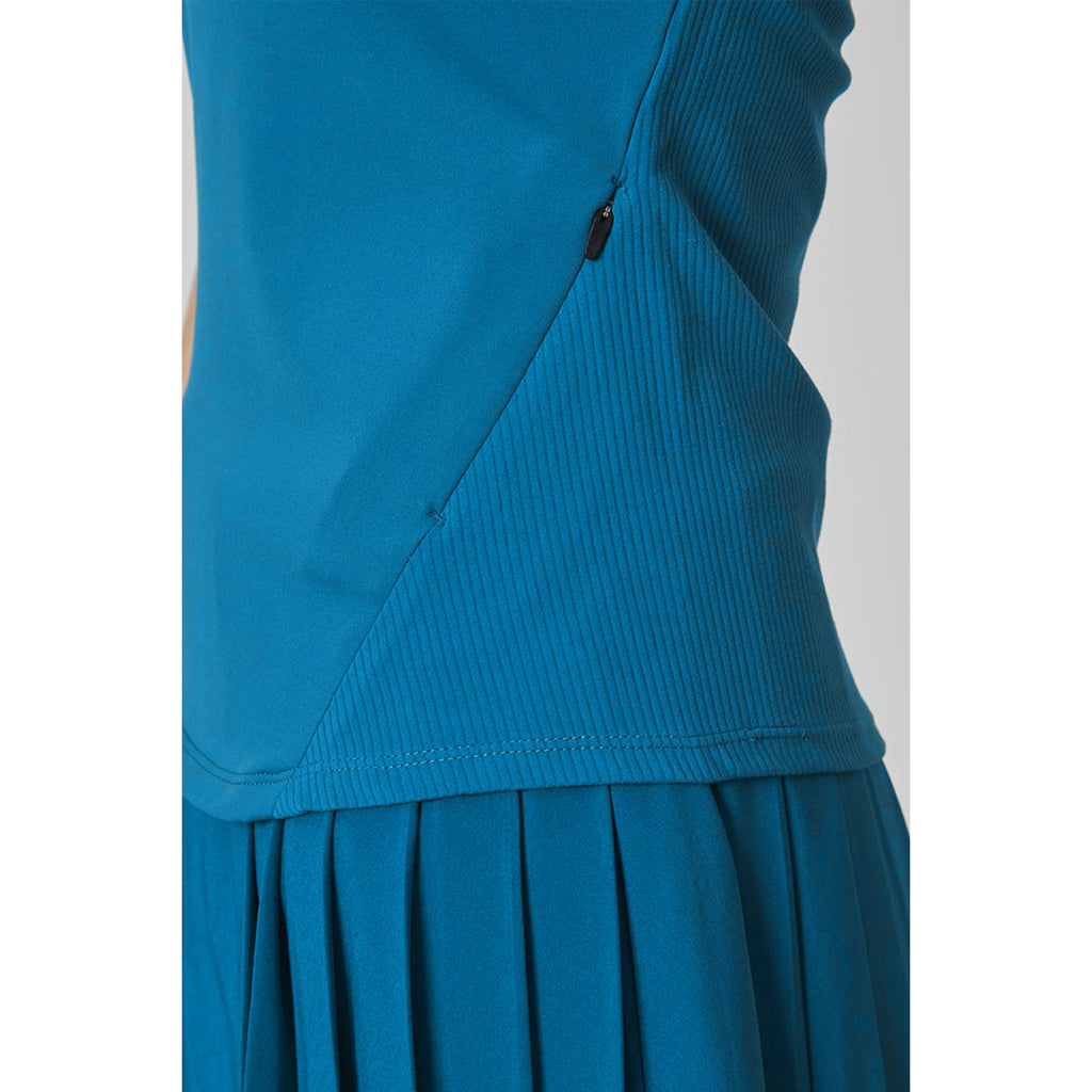 Snap front for added style on this aesthetically robust Moroccan blue polo. Designed with style and functionality in mind this polo has raglan sleeves so you can move with confidence on the court. Features a sleek front button placket, and small zip pocket for your essentials.